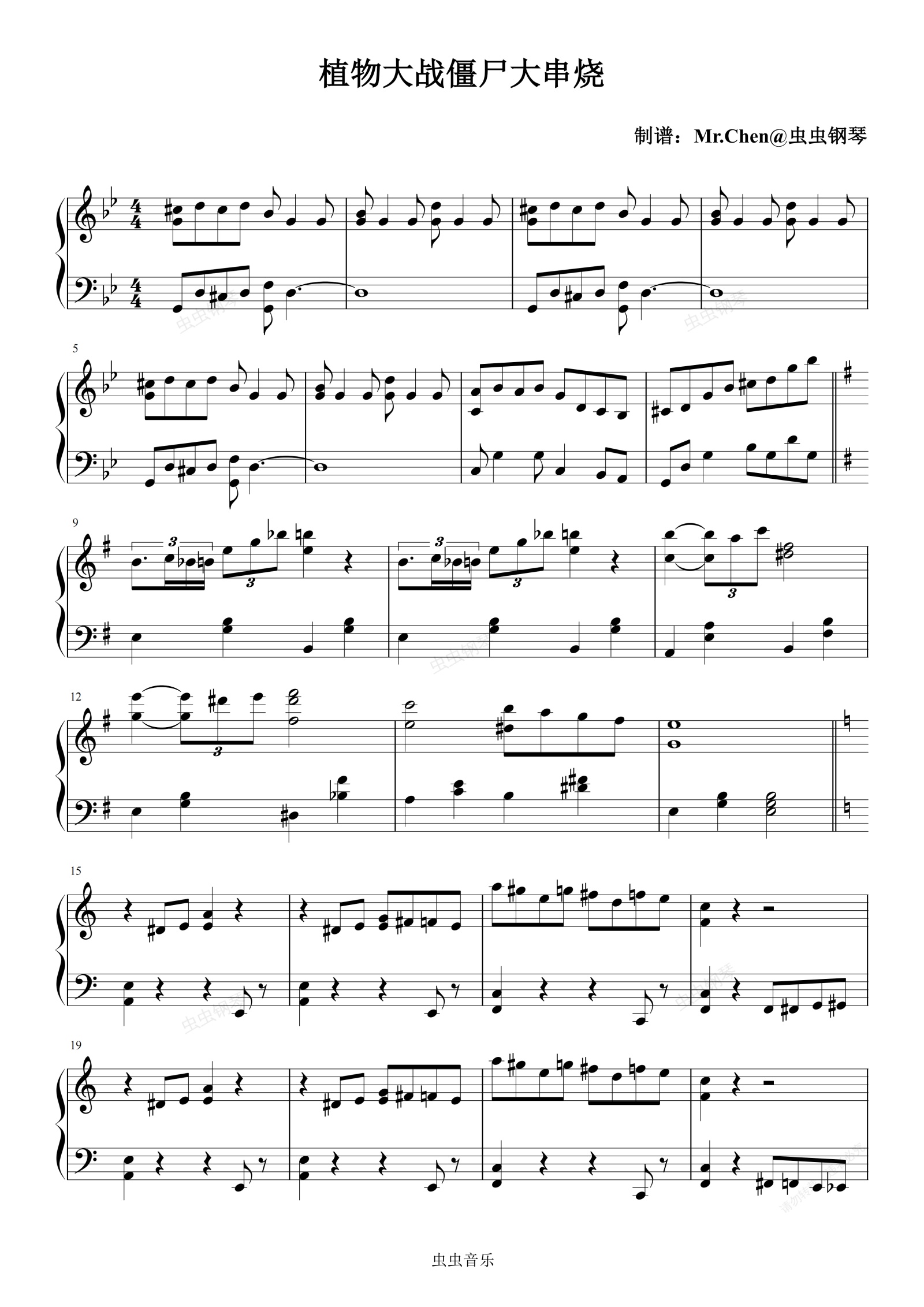 钢琴谱:植物大战僵尸大串烧 - 极度还原
