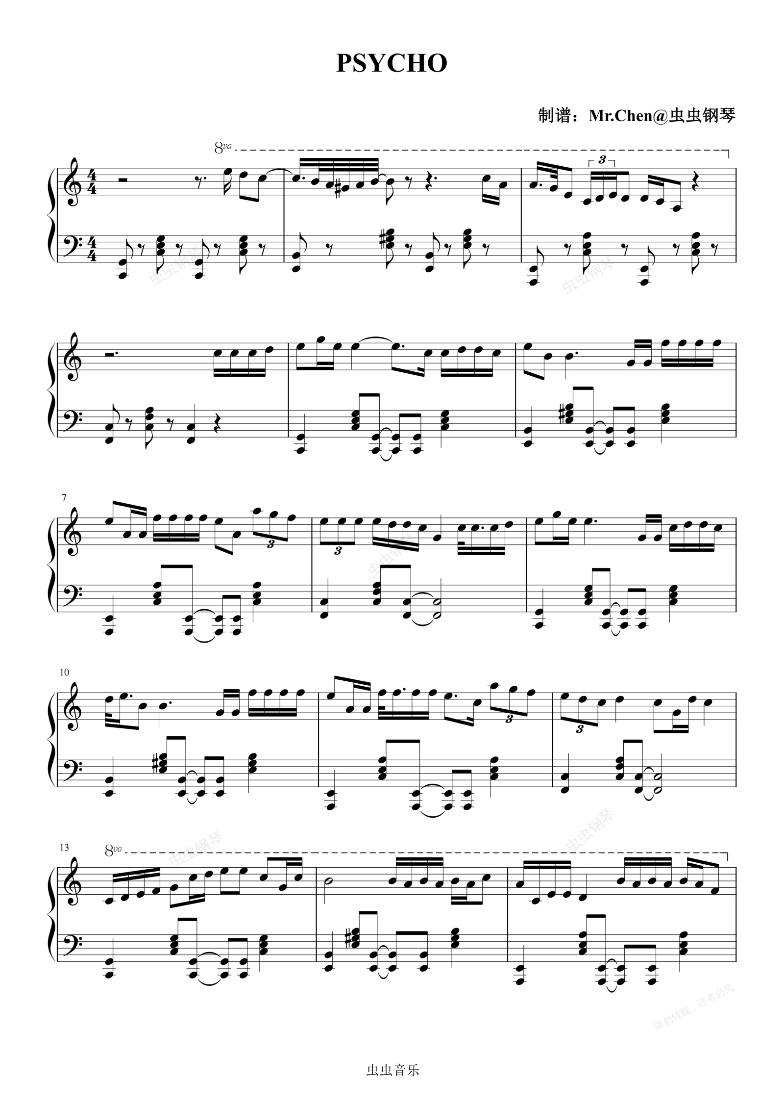 钢琴谱:PSYCHO - Red Velvet C调版