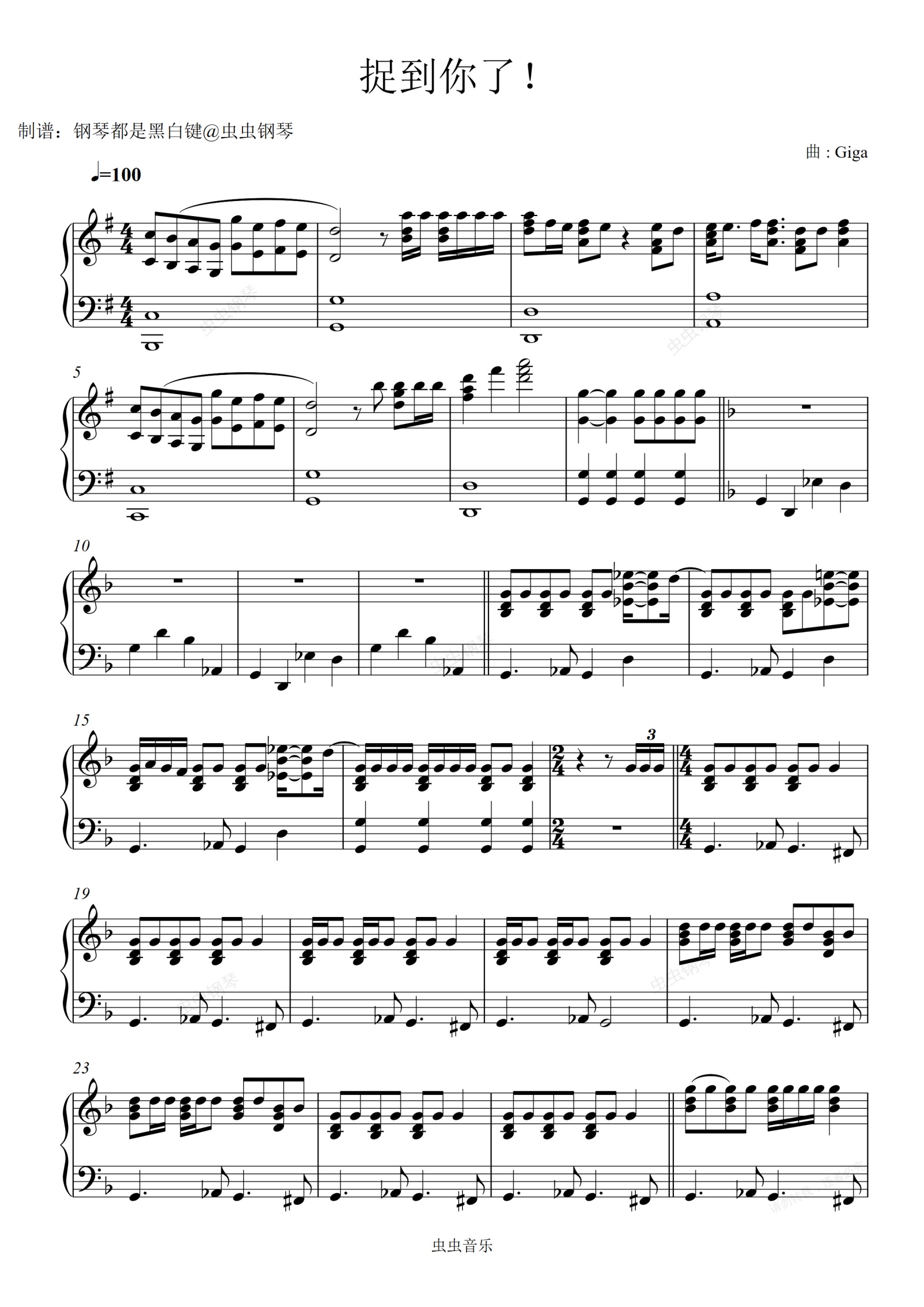 钢琴谱:(初音ミク)捉到你了!/ガッチュー!