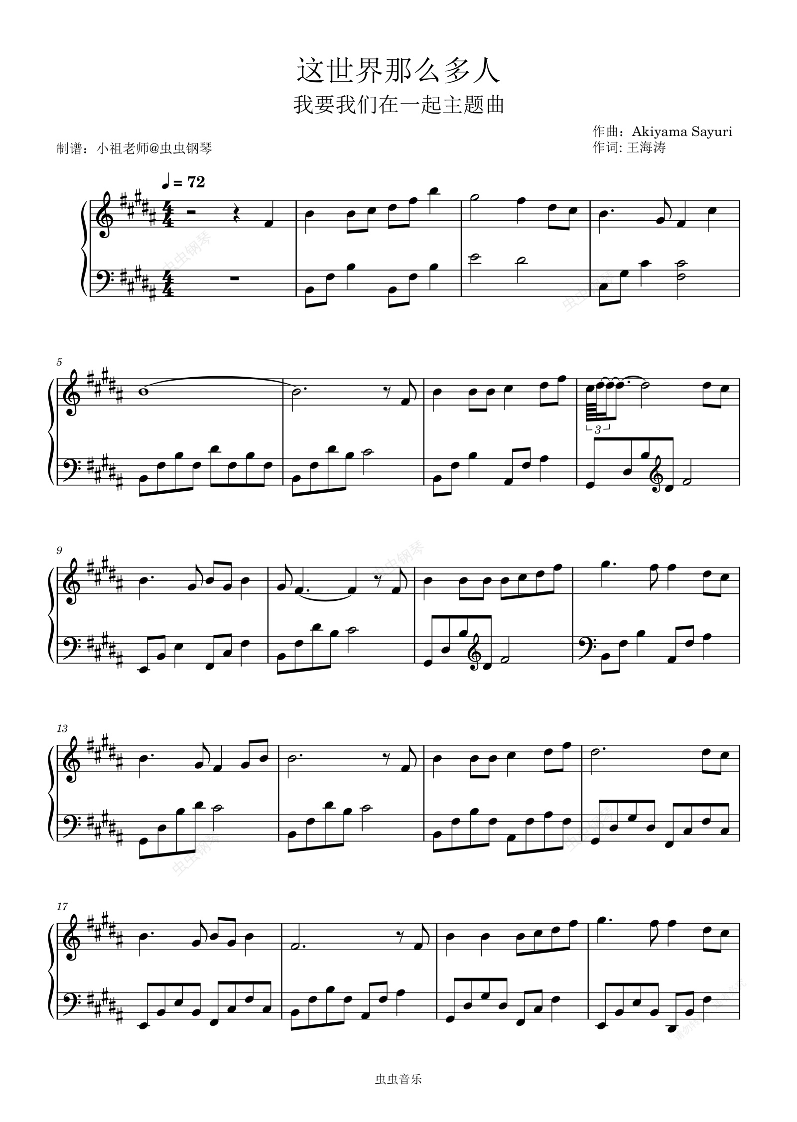 钢琴谱:这世界那么多人(完美还原版)