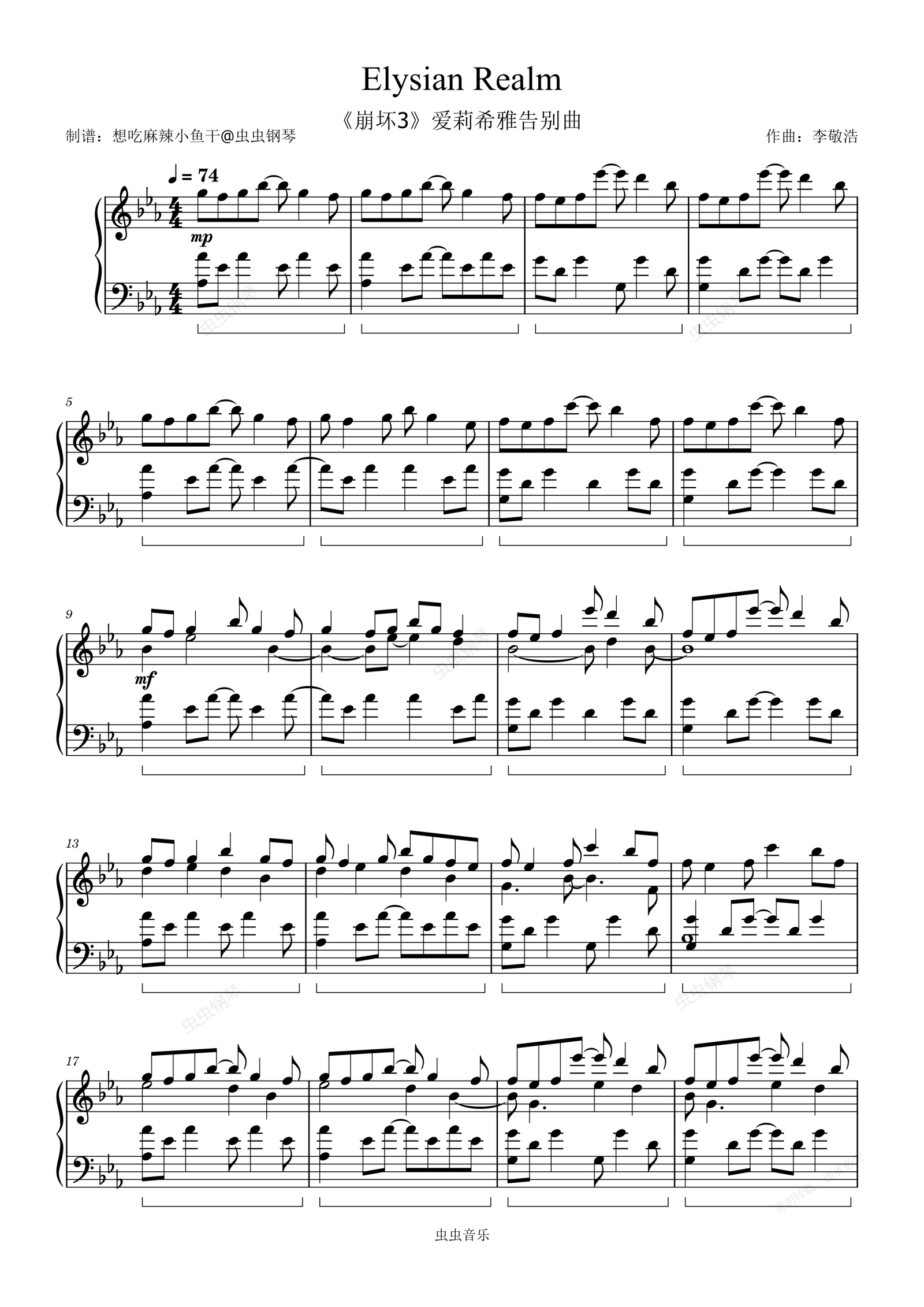 钢琴谱:Elysian Realm(《崩坏3》爱莉希雅告别曲)