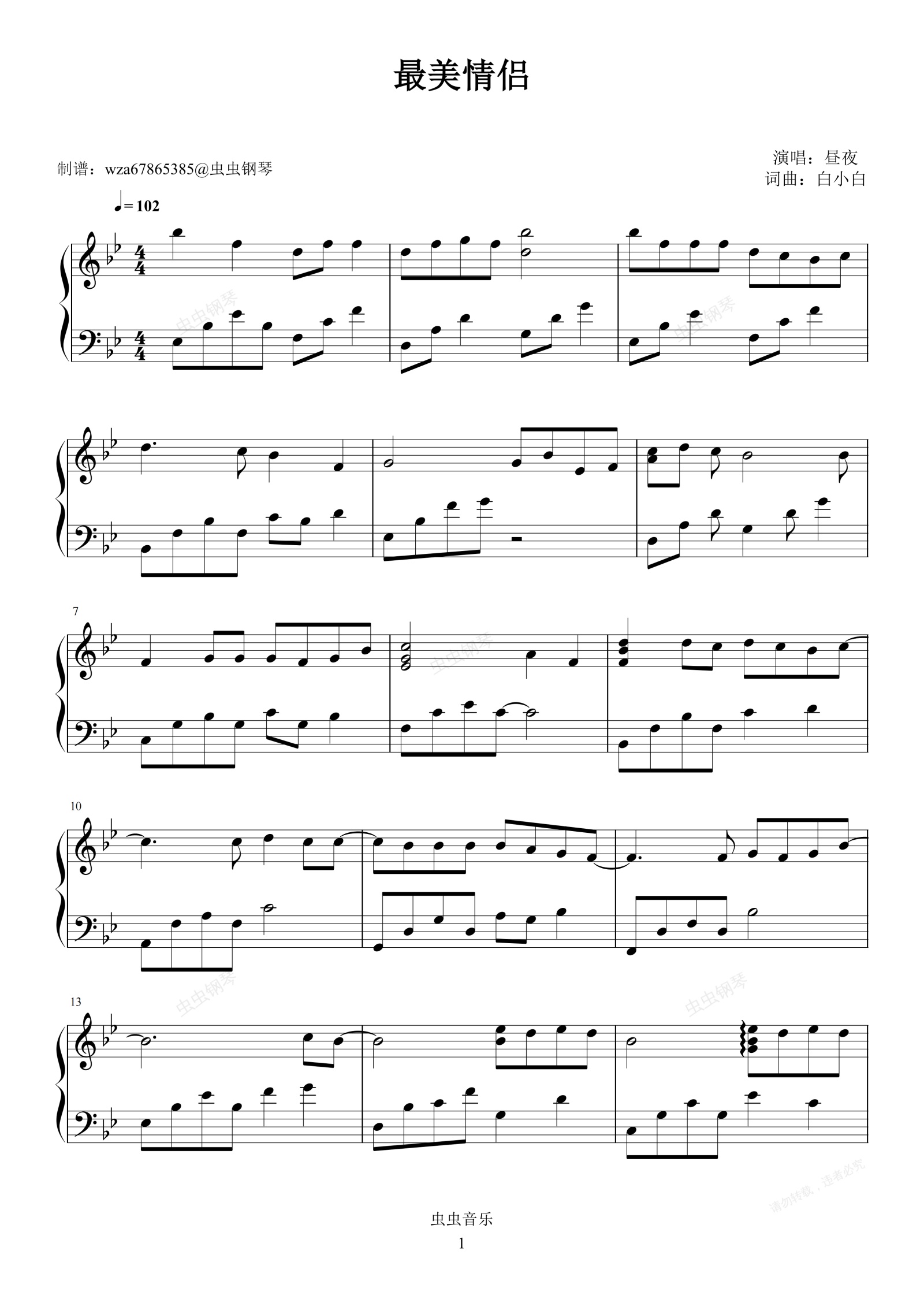 钢琴谱:最美情侣