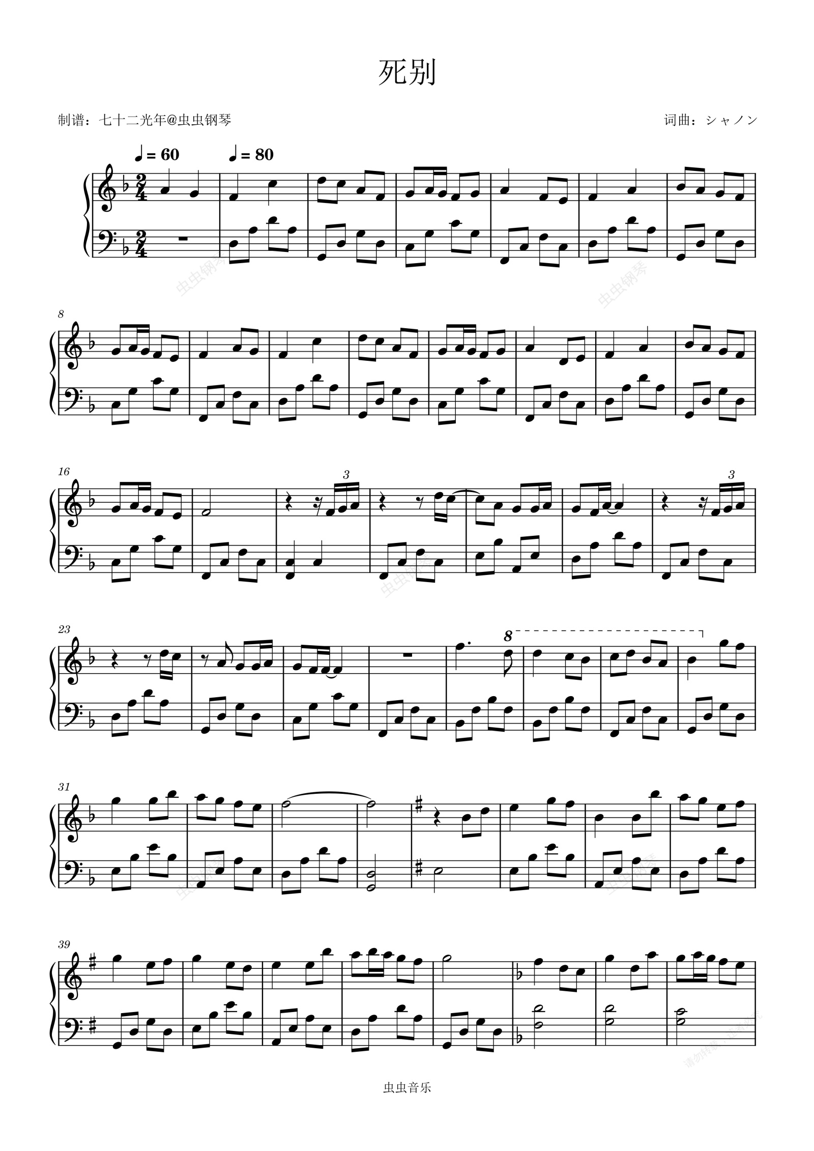 钢琴谱:死别 初学者版