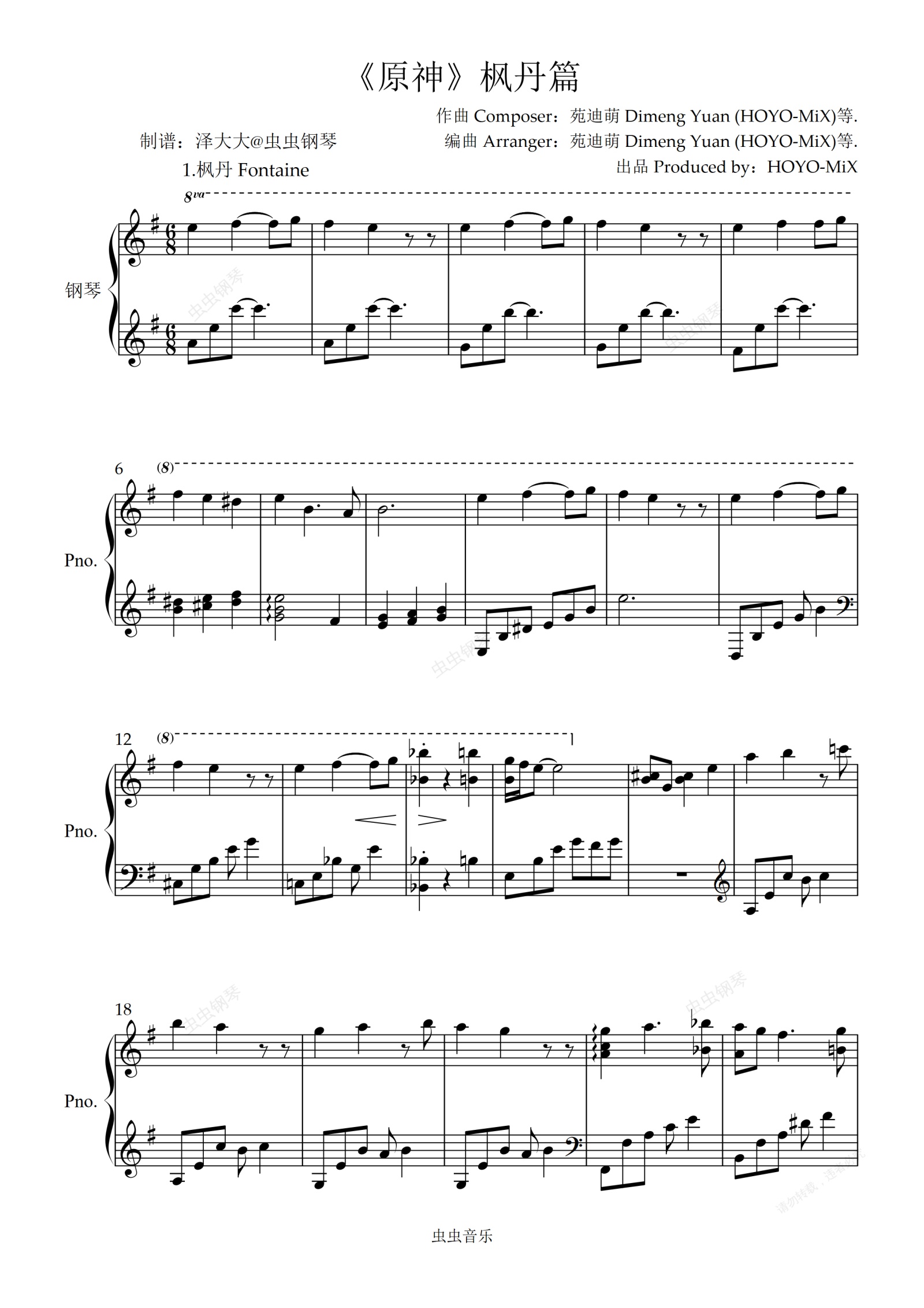 钢琴谱:原神·枫丹城篇【24首超长高质量独奏合集】泽大大