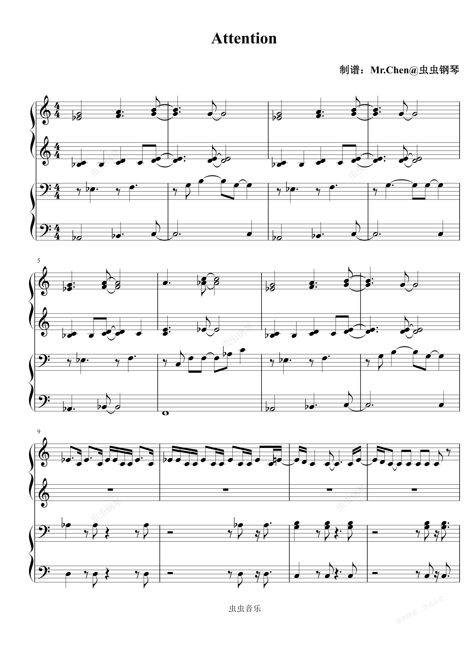 钢琴谱:Attention (四手联弹)C调 - New Jeans