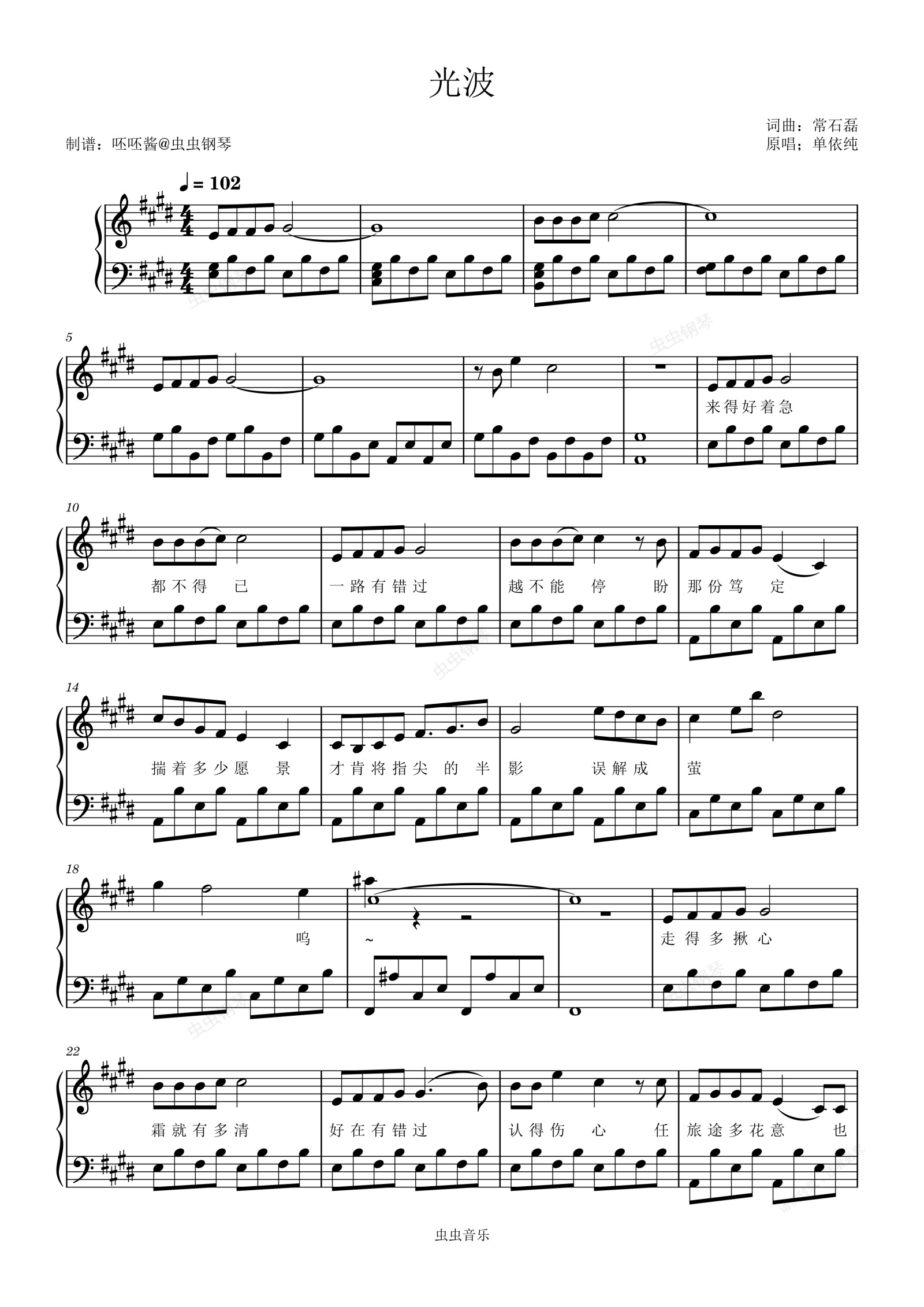 钢琴谱:光波【男生版】-单依纯-E调