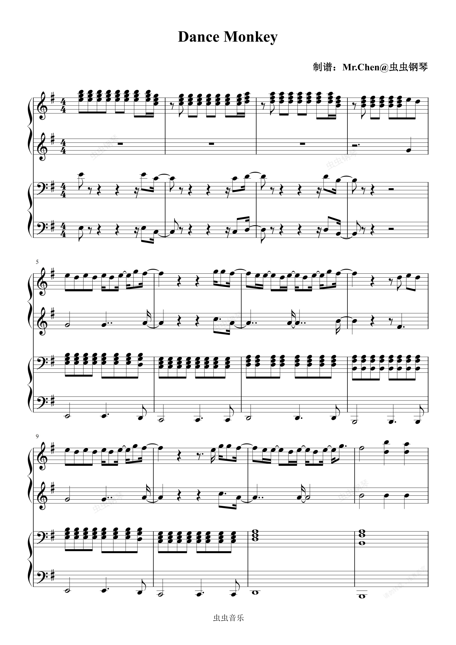 钢琴谱:Dance Monkey (四手联弹)G调 - Tones and I