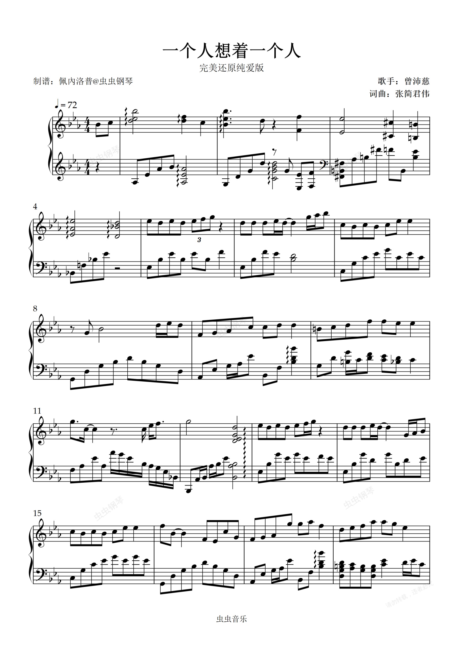 钢琴谱:一个人想着一个人-2026完美还原纯爱版