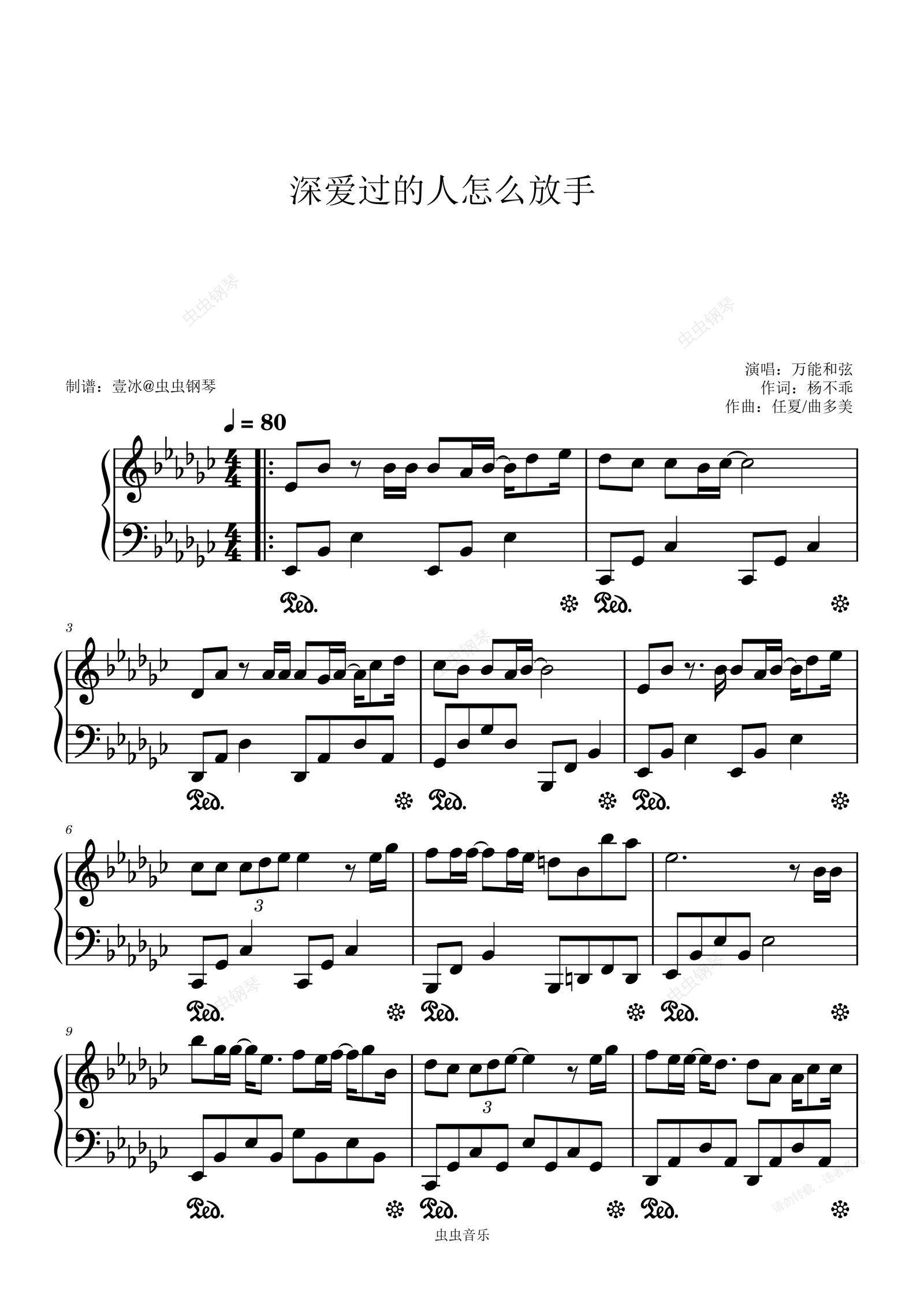 钢琴谱:深爱过的人怎么放手 原调
