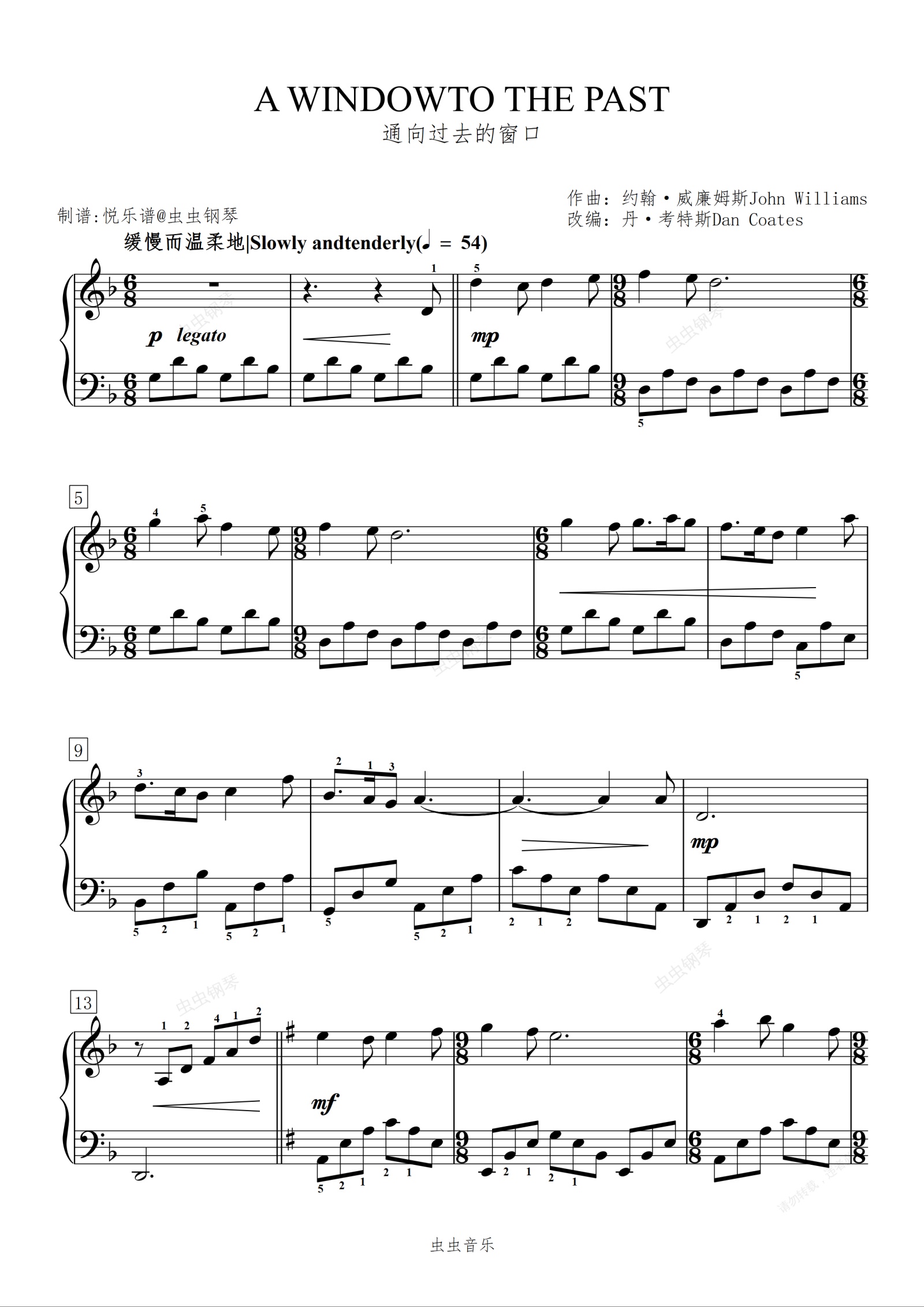钢琴谱:通向过去的窗口/A WINDOWTO THE PAST 【抒情】