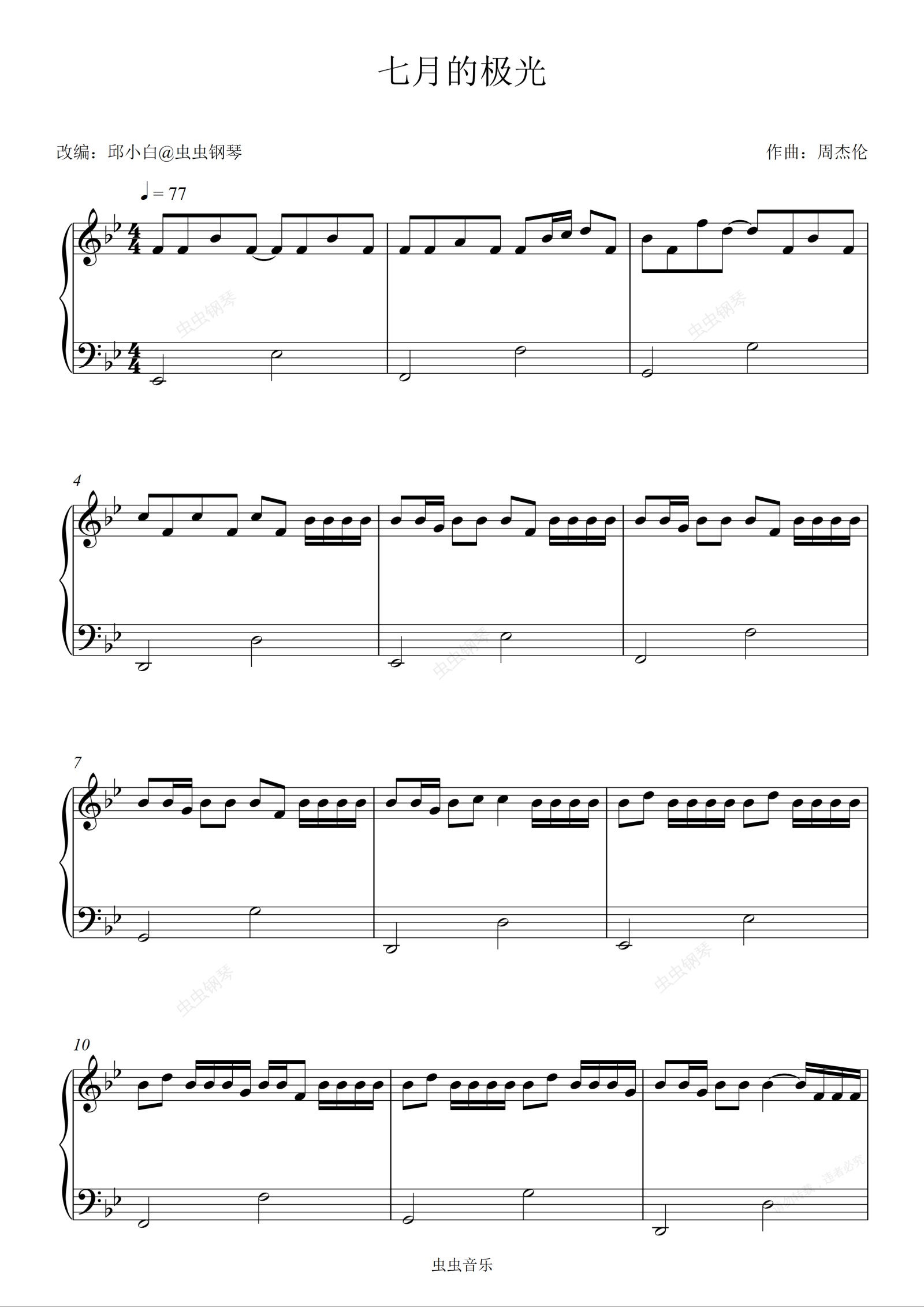 钢琴谱:七月的极光(启蒙版)