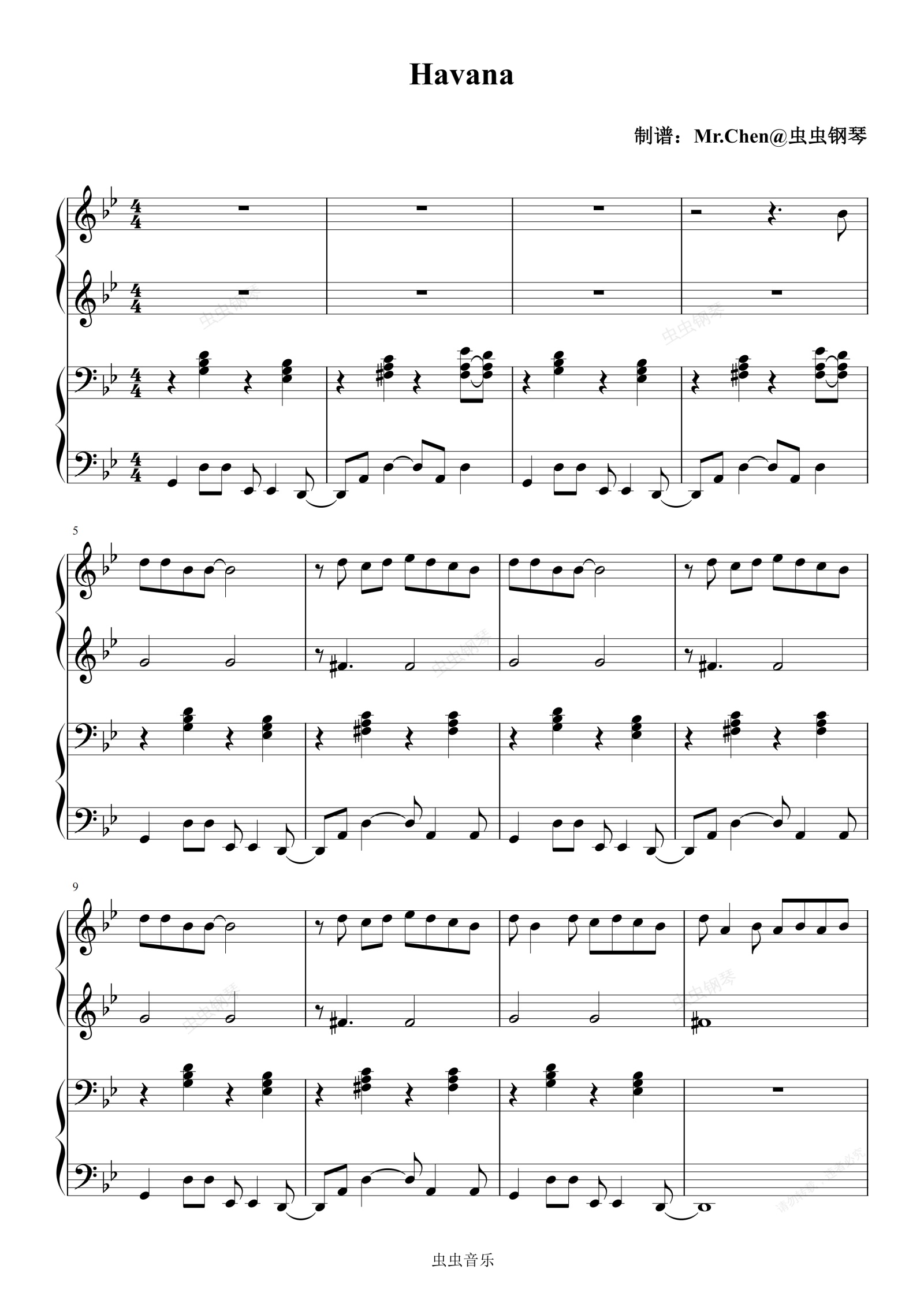 钢琴谱:Havana (四手联弹)- Camila Cabello
