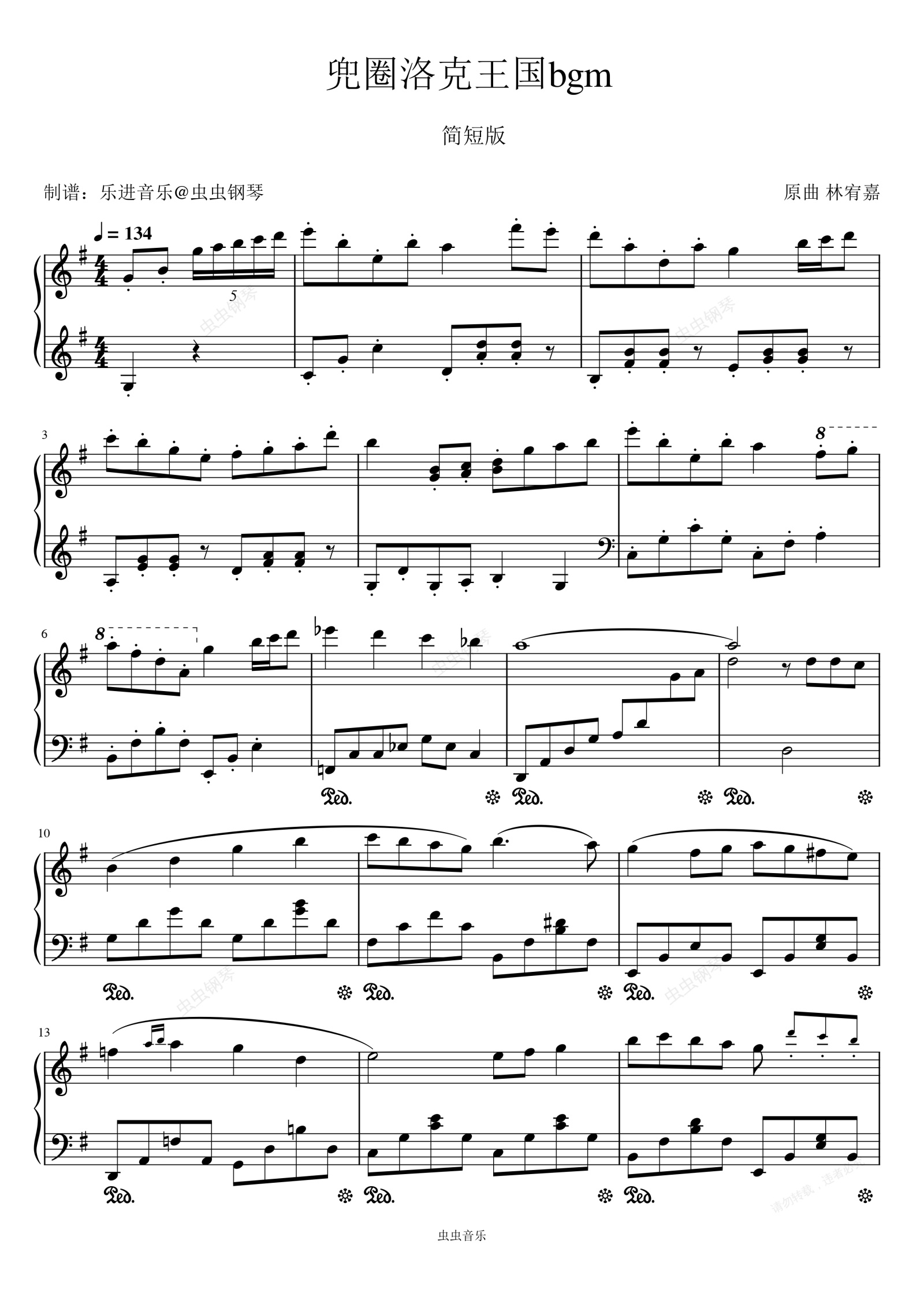 钢琴谱:兜圈洛克王国BGM