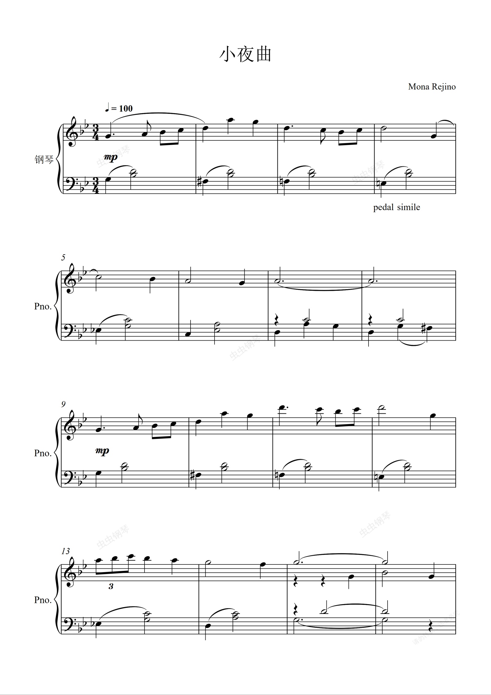 钢琴谱:小夜曲 Nocturne