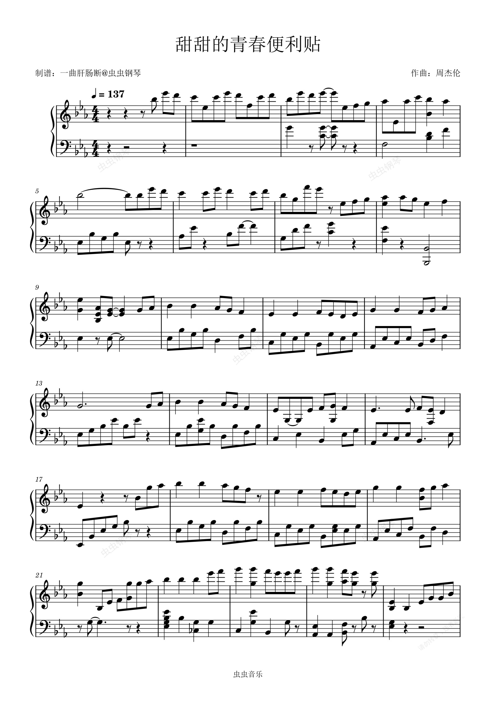 钢琴谱:《甜甜的青春便利贴》钢琴极致还原版