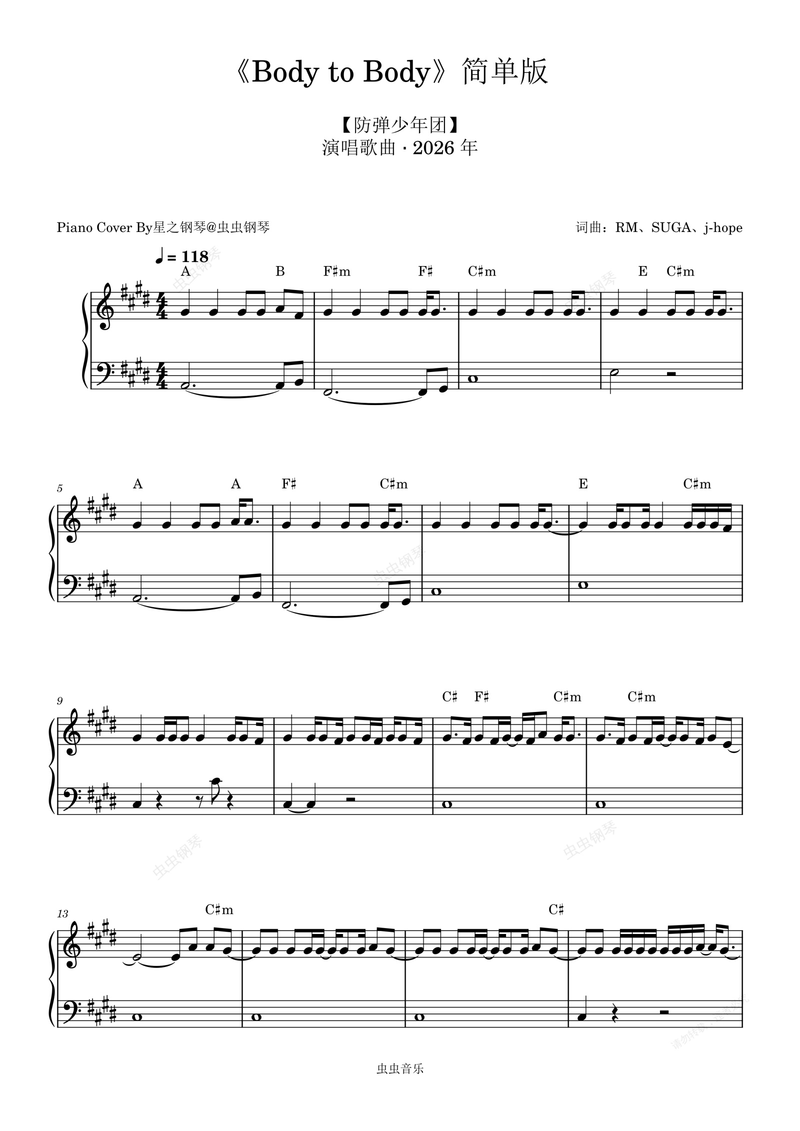 钢琴谱:【BTS】《Body to Body》简单钢琴谱~星之钢琴~