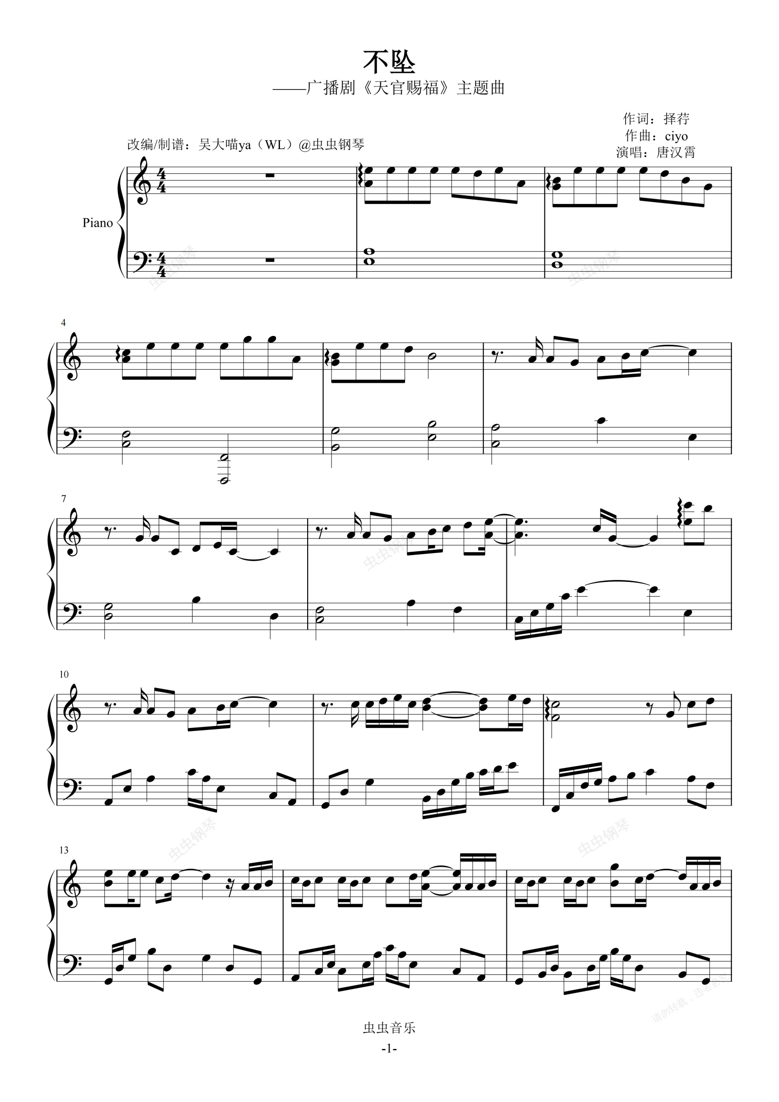 钢琴谱:不坠C调-广播剧《天官赐福》主题曲