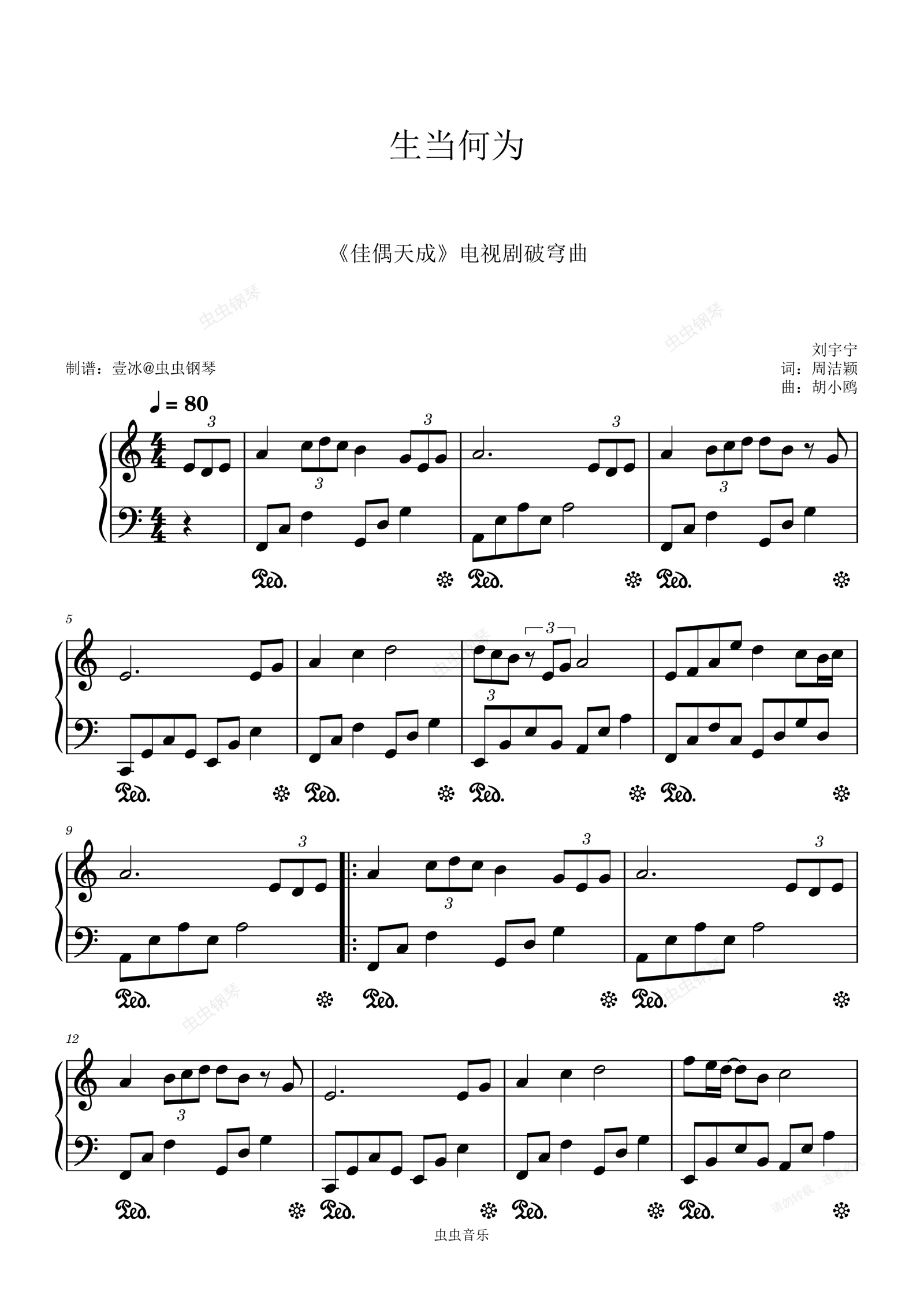 钢琴谱:生当何为 (《佳偶天成》电视剧破穹曲) - 刘宇宁 C调
