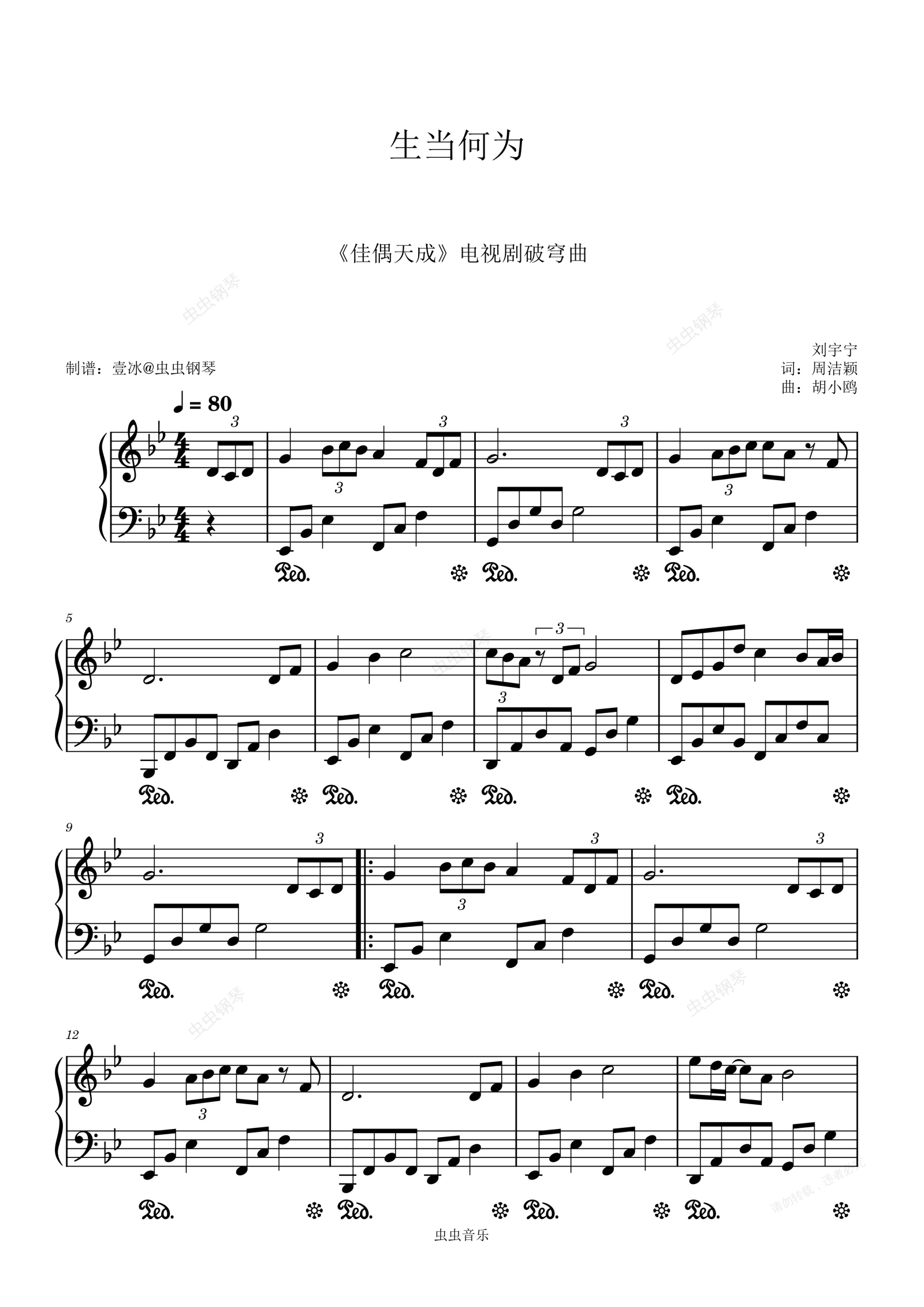 钢琴谱:生当何为 (《佳偶天成》电视剧破穹曲) - 刘宇宁 原调