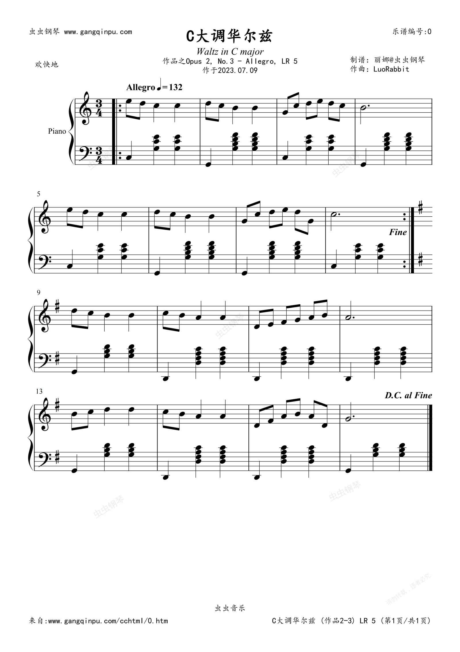 摘录自“罗兔兔”的专辑《Waltz in C major, Opus 2》第三首,Waltz in C major, Opus 2, No. 3 -, LR 5 (C大调华尔兹,作品2-3,快板,LR 5),作于2023年07月09日,并于同年发行,罗兔兔原创古典音乐。