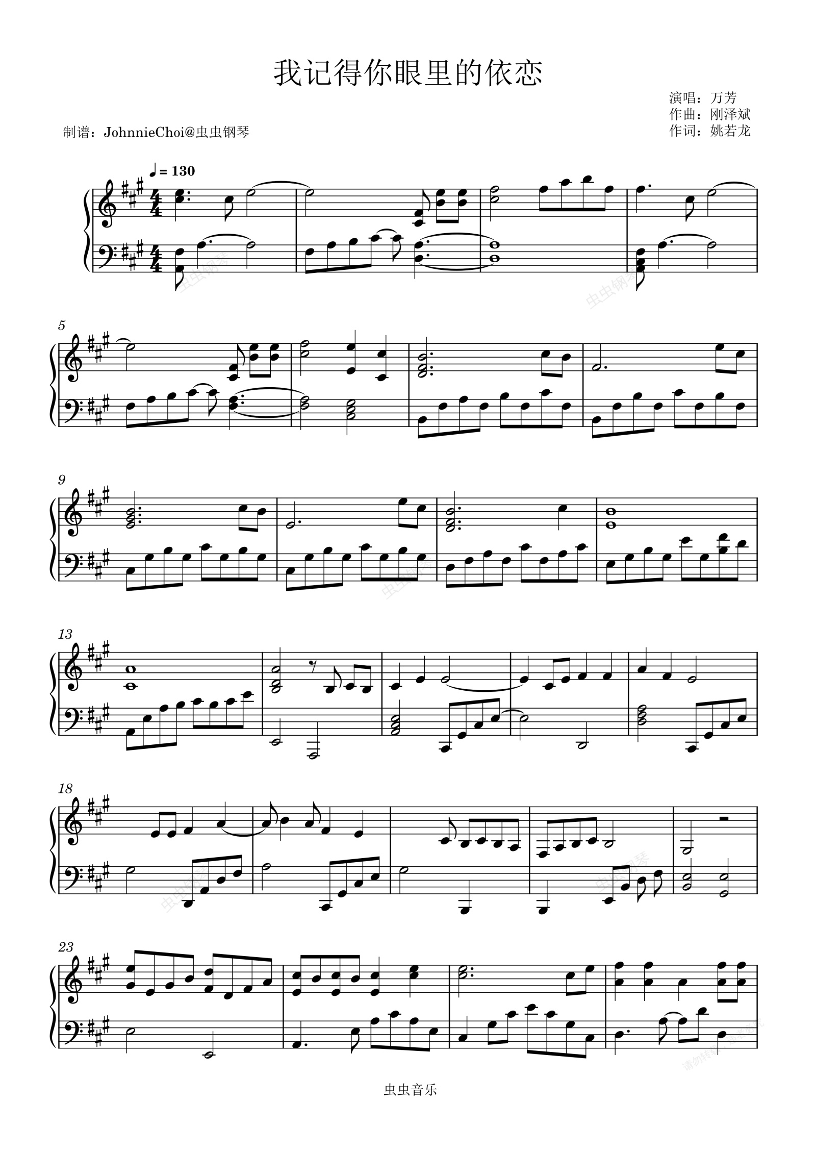 钢琴谱:我记得你眼里的依恋-万芳-完整版