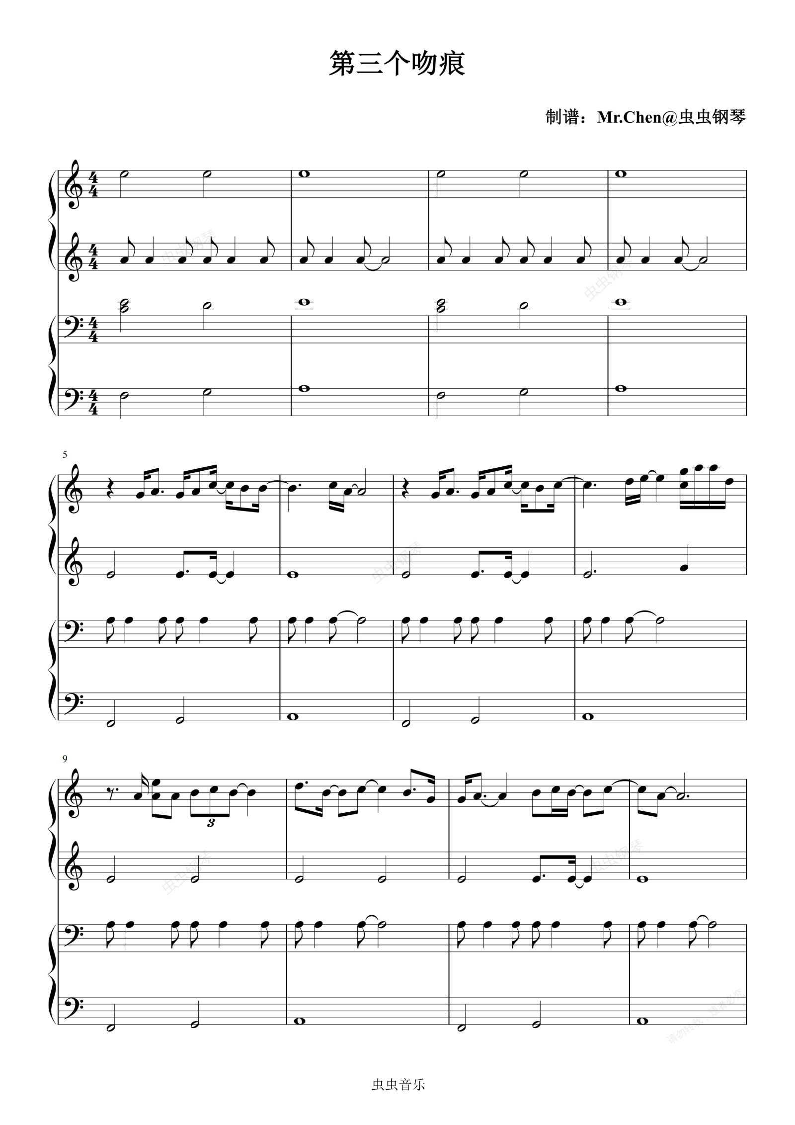钢琴谱:第三个吻痕 (四手联弹)- 李思甜