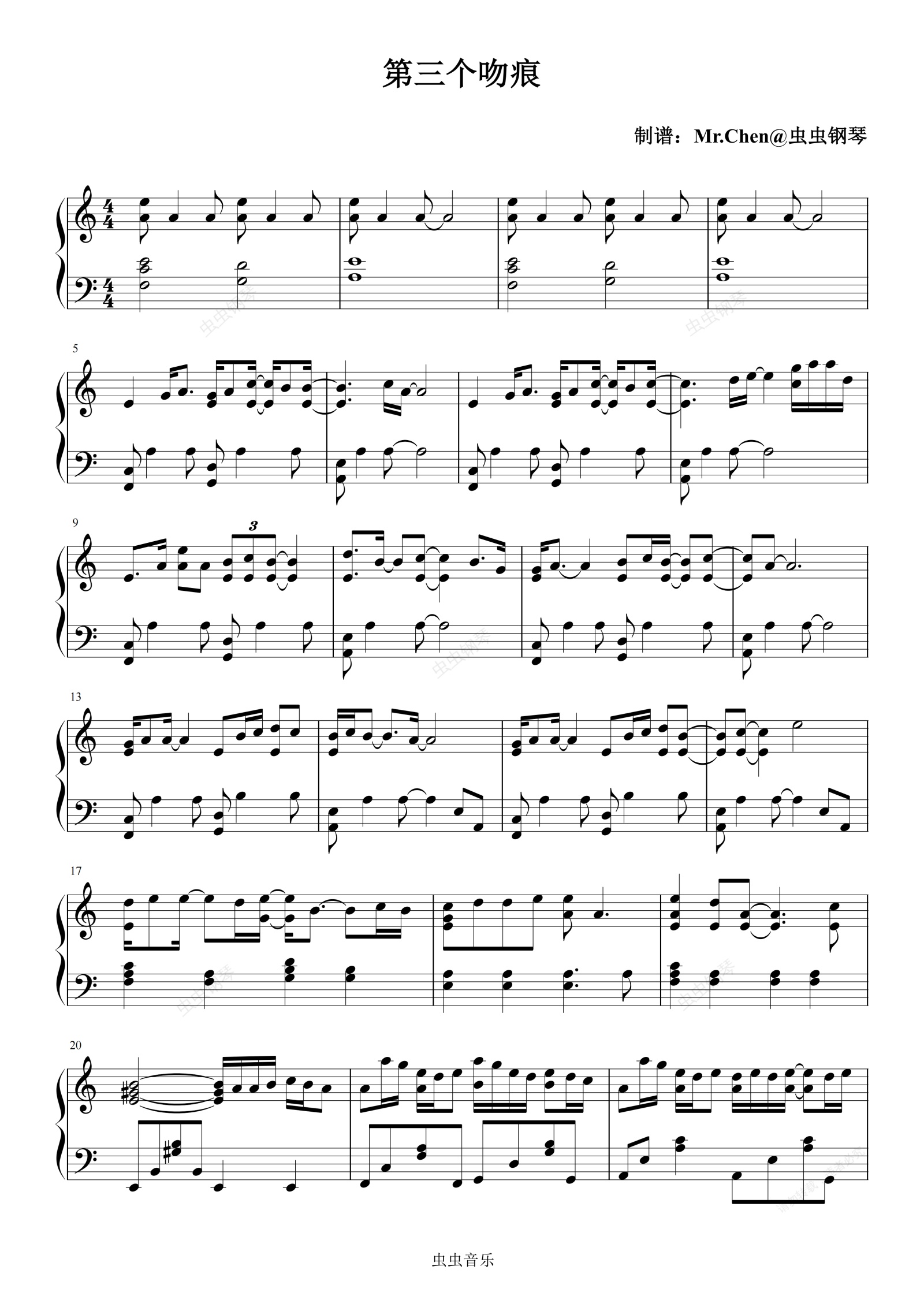 钢琴谱:第三个吻痕 - 李思甜 极度还原