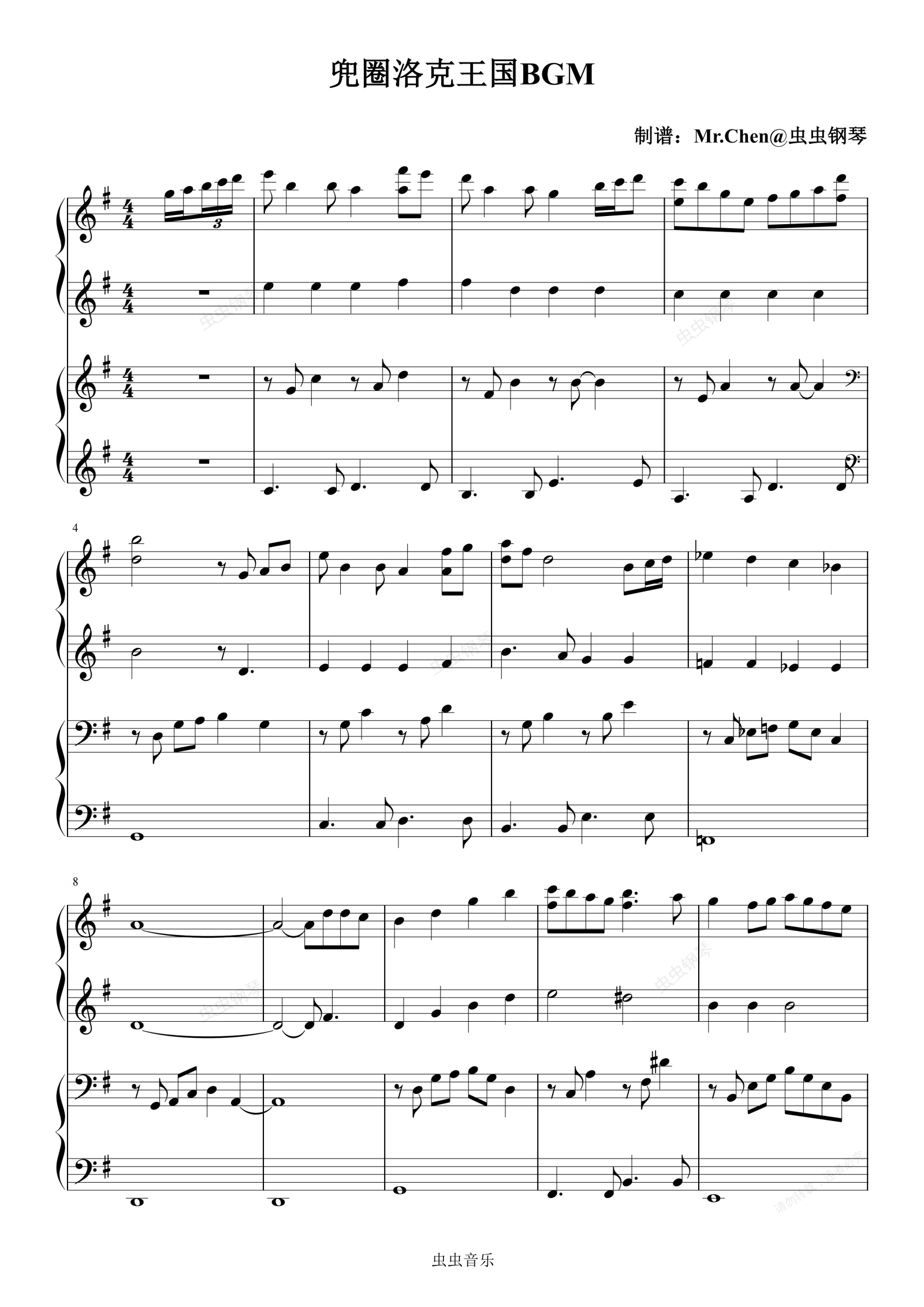 钢琴谱:兜圈洛克王国BGM (四手联弹)- 完整版