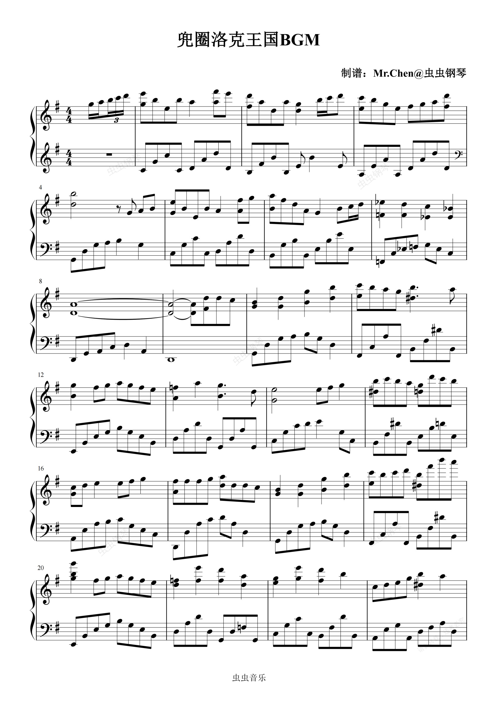 钢琴谱:兜圈洛克王国BGM - 完整版 极度还原