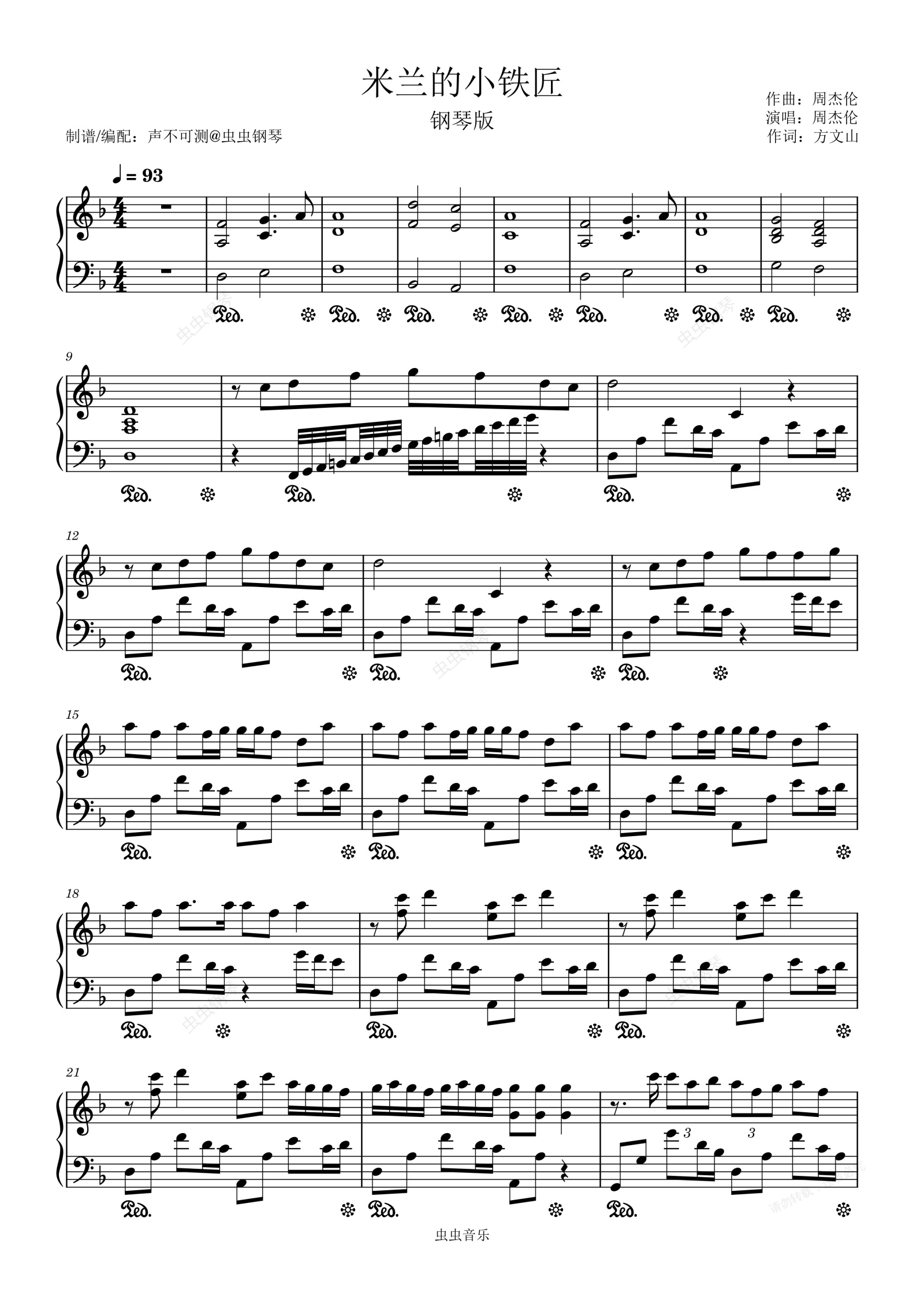 钢琴谱:《米兰的小铁匠》高度还原 - 声不可测