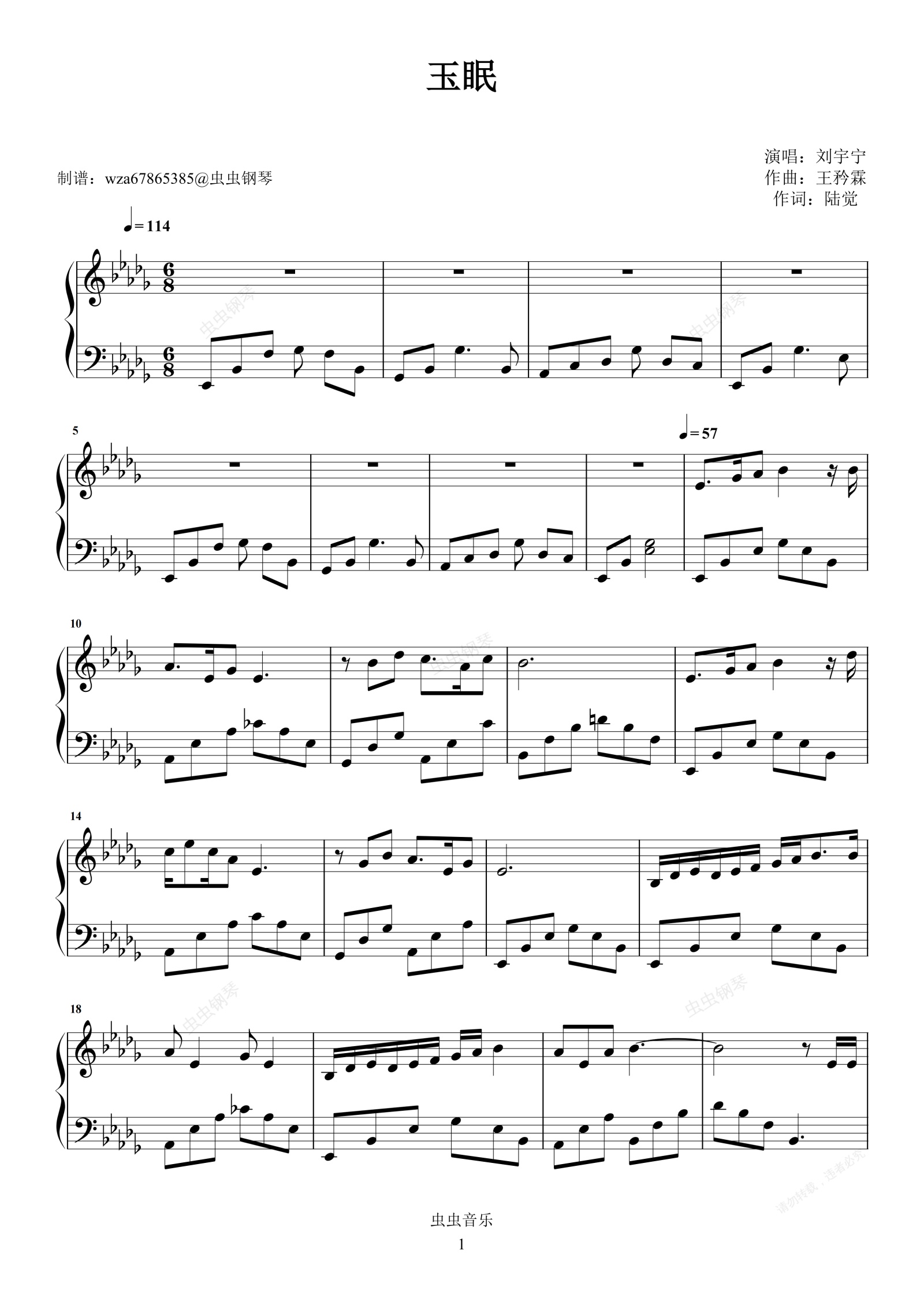 钢琴谱:玉眠