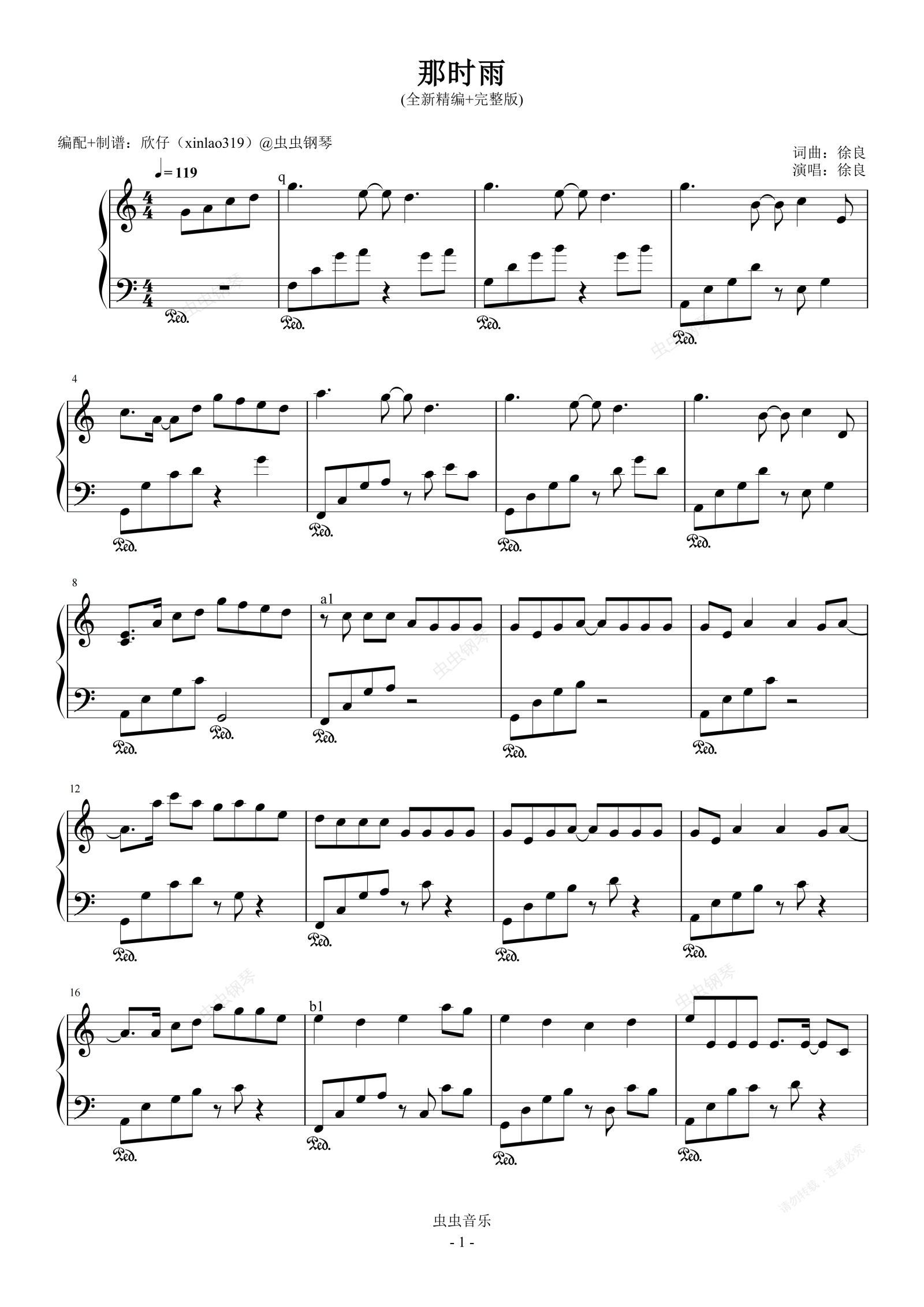 钢琴谱:那时雨(C、徐良、全新精编+完整版)