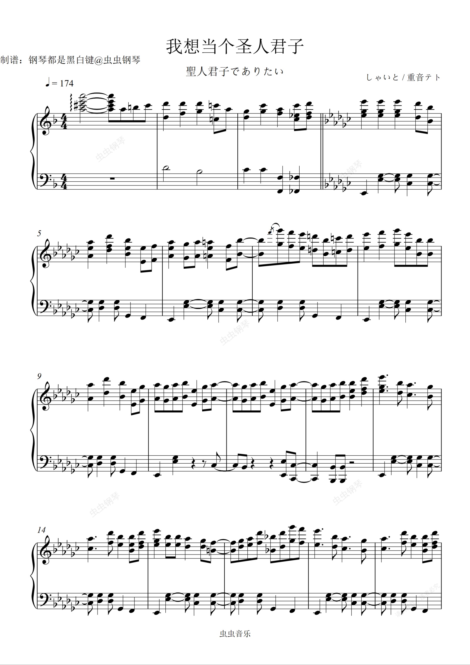 钢琴谱:【重音テト】我想当个圣人君子(超燃副歌片段)
