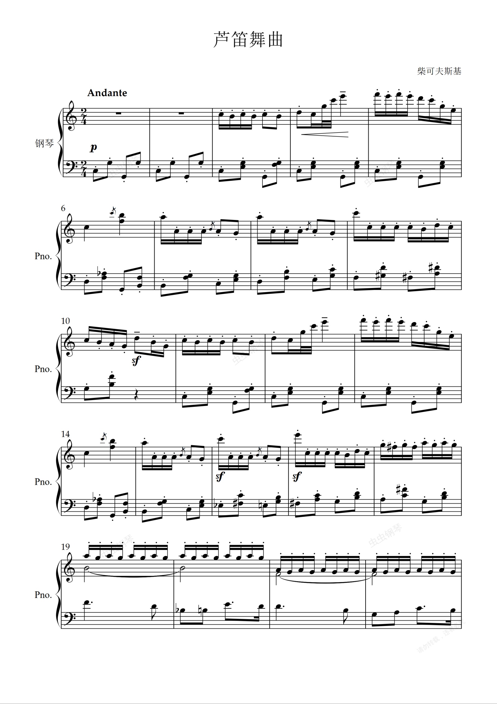 钢琴谱:芦笛舞曲(选自芭蕾舞剧《胡桃夹子》)