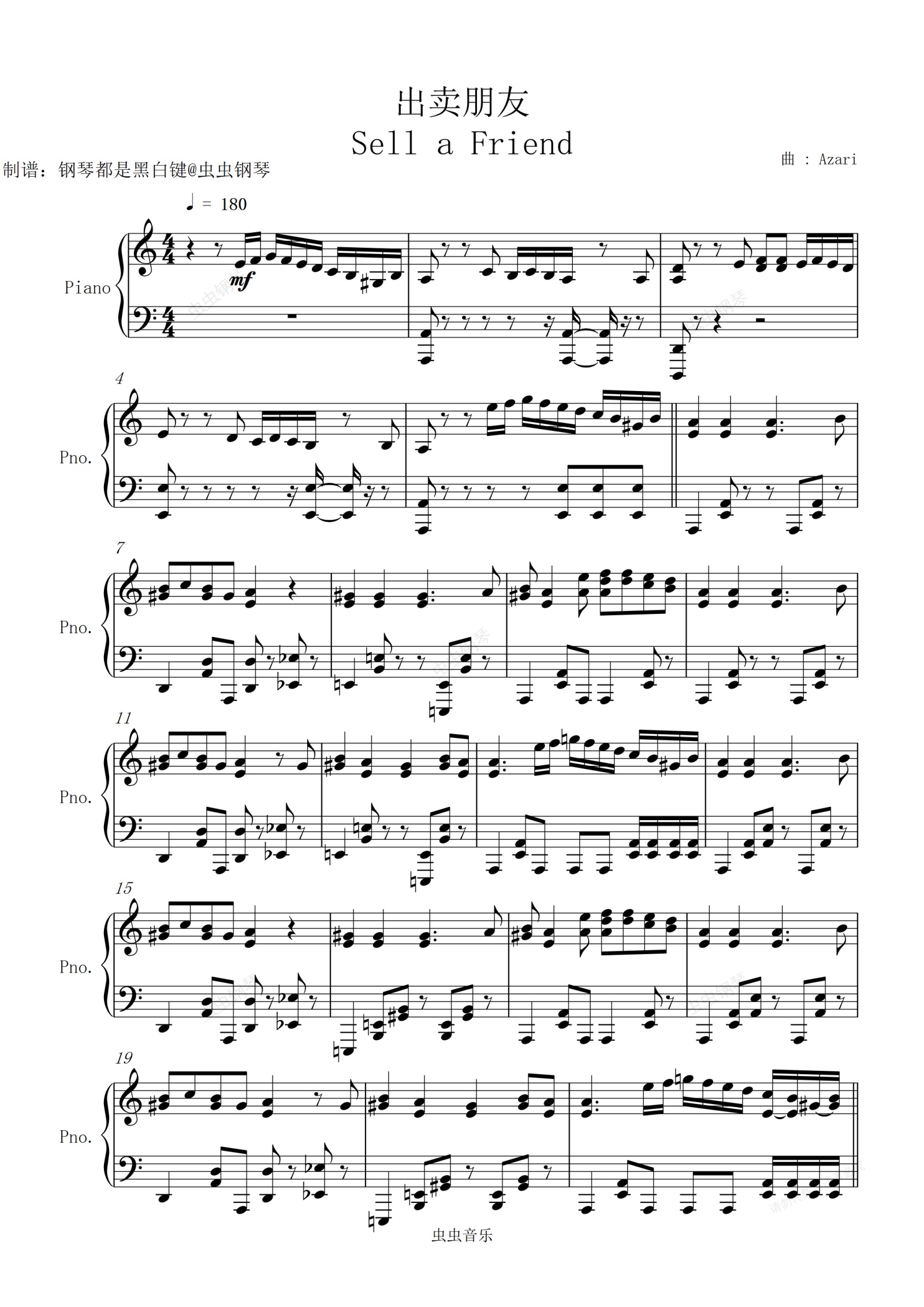 钢琴谱:【重音テト】出卖朋友/Sell a Friend(中等难度演奏版)