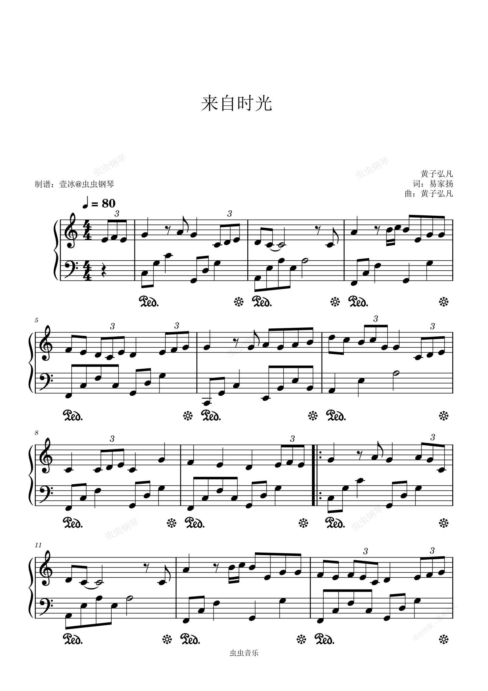 钢琴谱:来自时光 - 黄子弘凡 C调