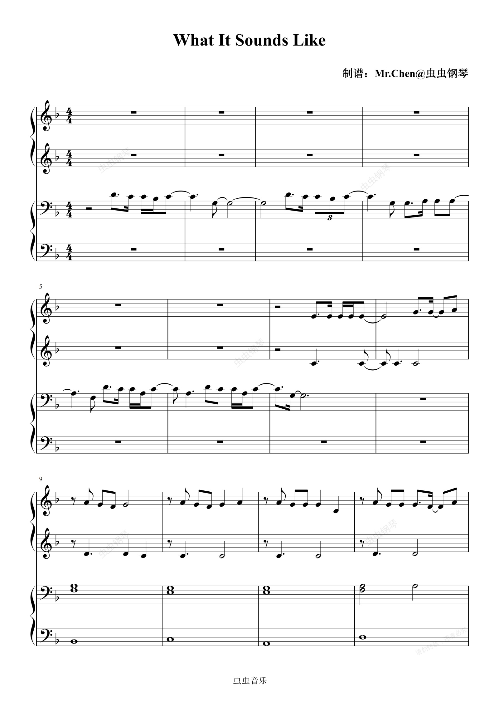 钢琴谱:What It Sounds Like (四手联弹)F调 - HUNTR/X 猎魔女团