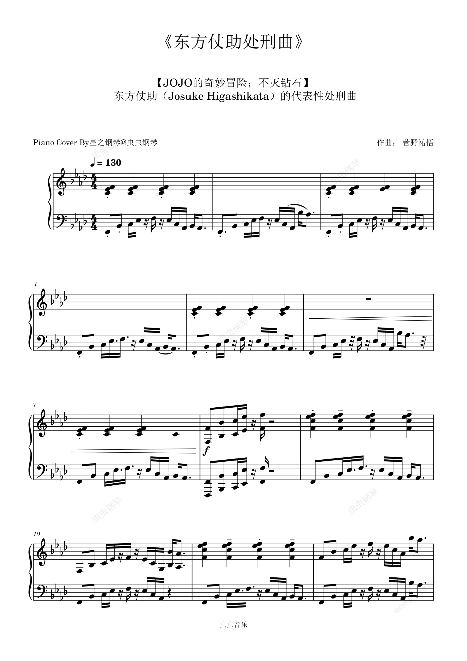 钢琴谱:【JOJO的奇妙冒险:不灭钻石】《东方仗助处刑曲》极限还原钢琴谱~星之钢琴~