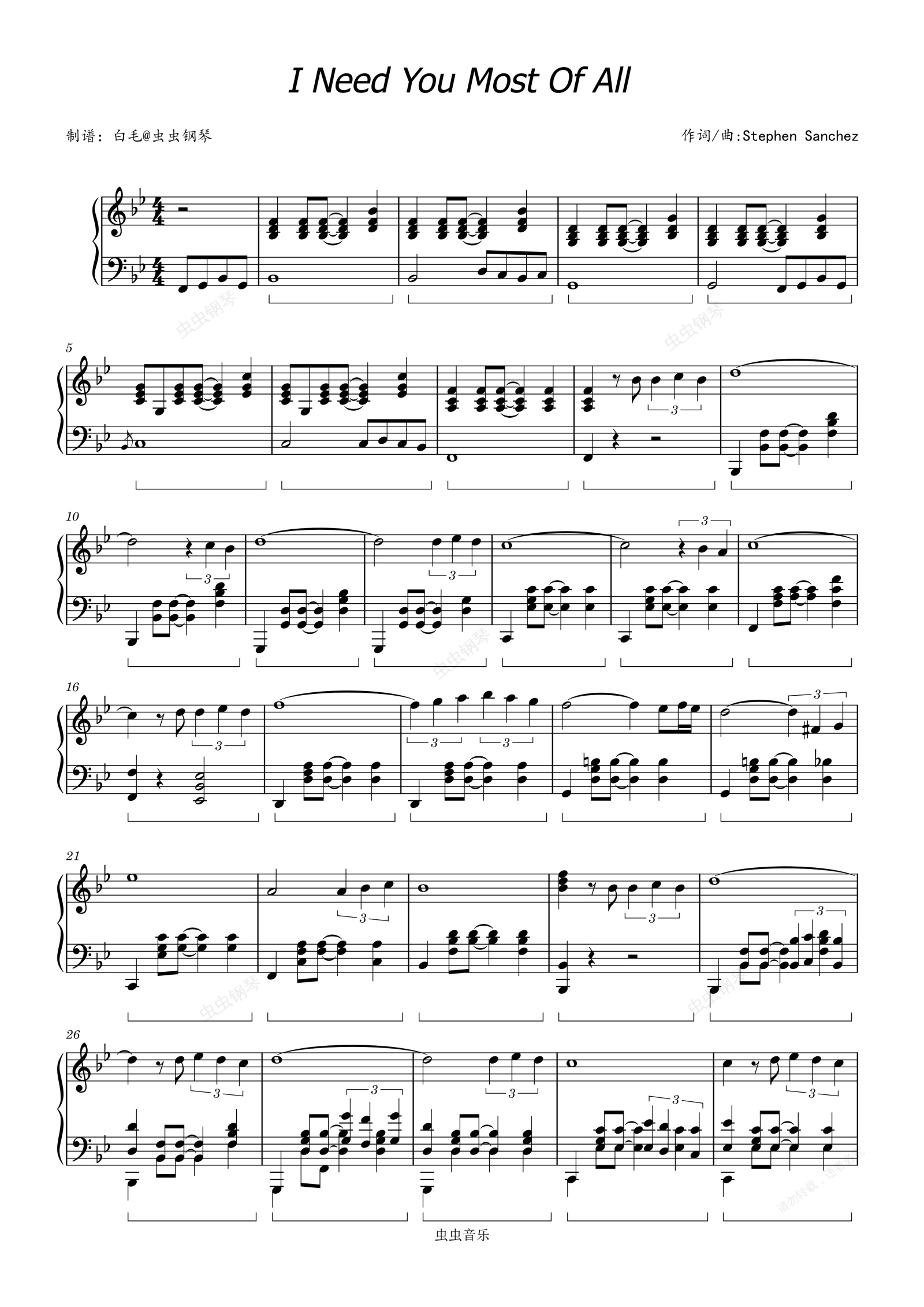 钢琴谱:【复古情歌】I Need You Most of All 原调