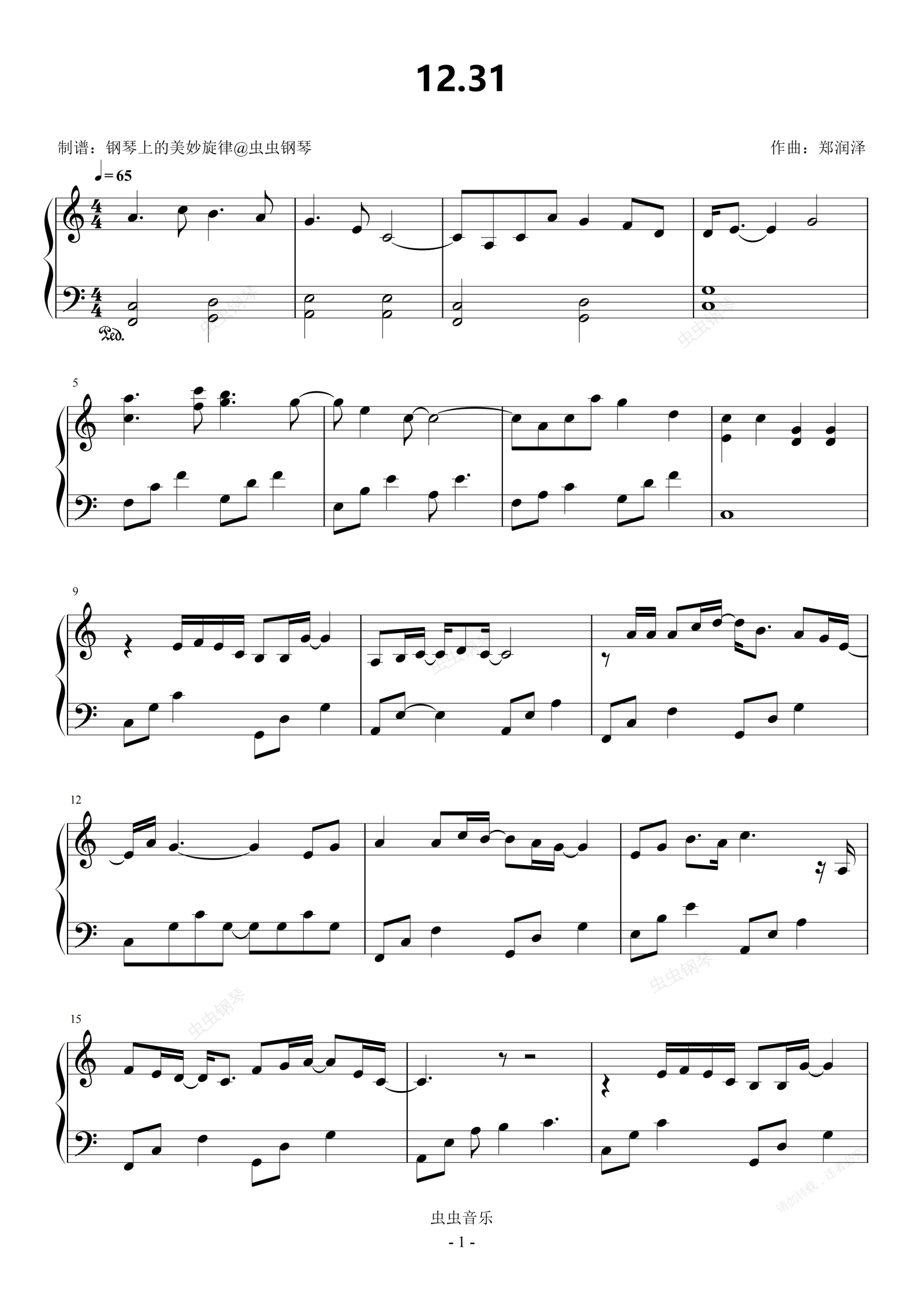 钢琴谱:12.31 C调简易版 郑润泽