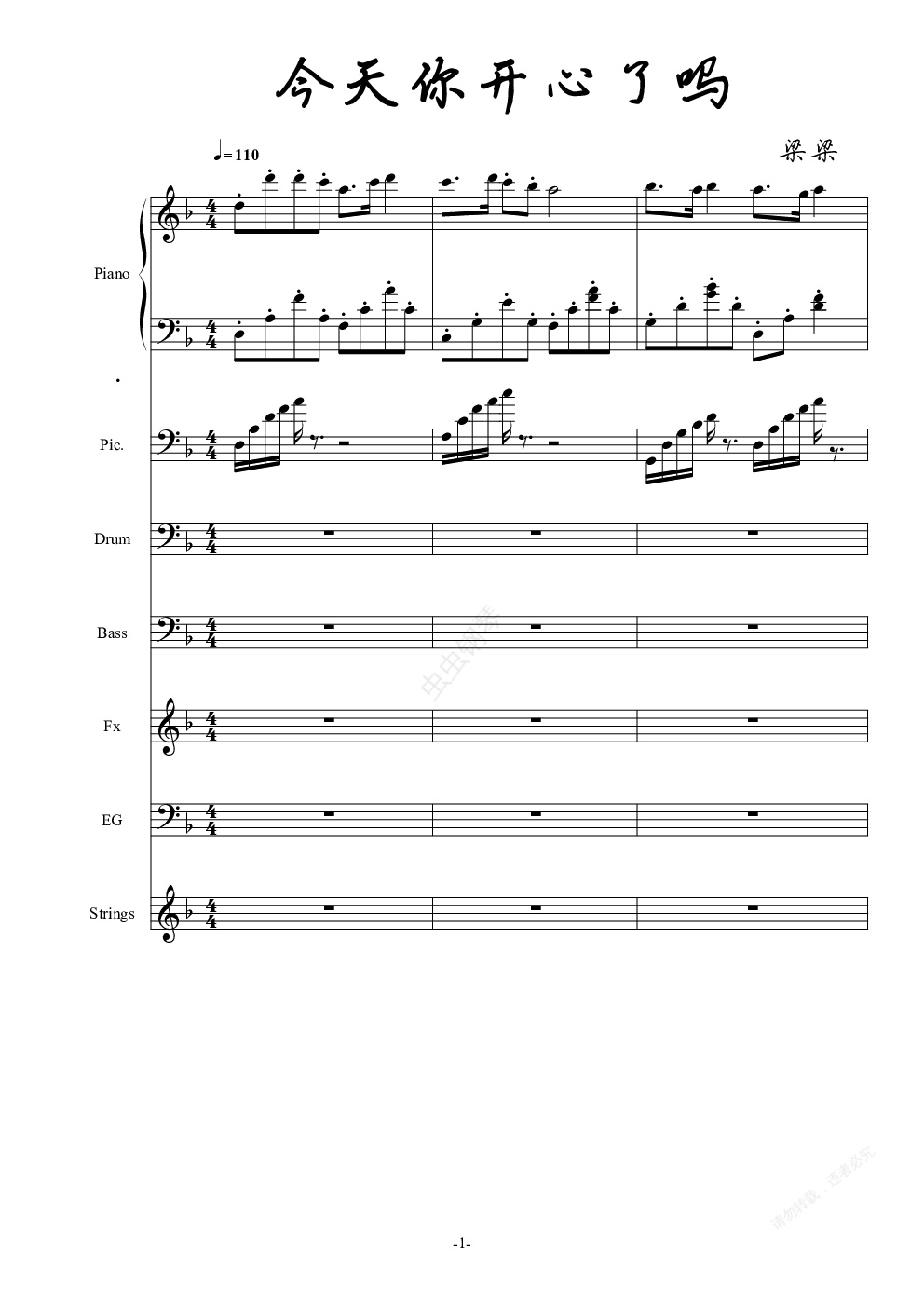 很久以前即兴弹得一段,今天把它制作成了总谱,虽然旋律很简单,但是觉得挺好听的,希望伤心的人听了之后会变得开心一些,开心的人听了之后会更加开心!