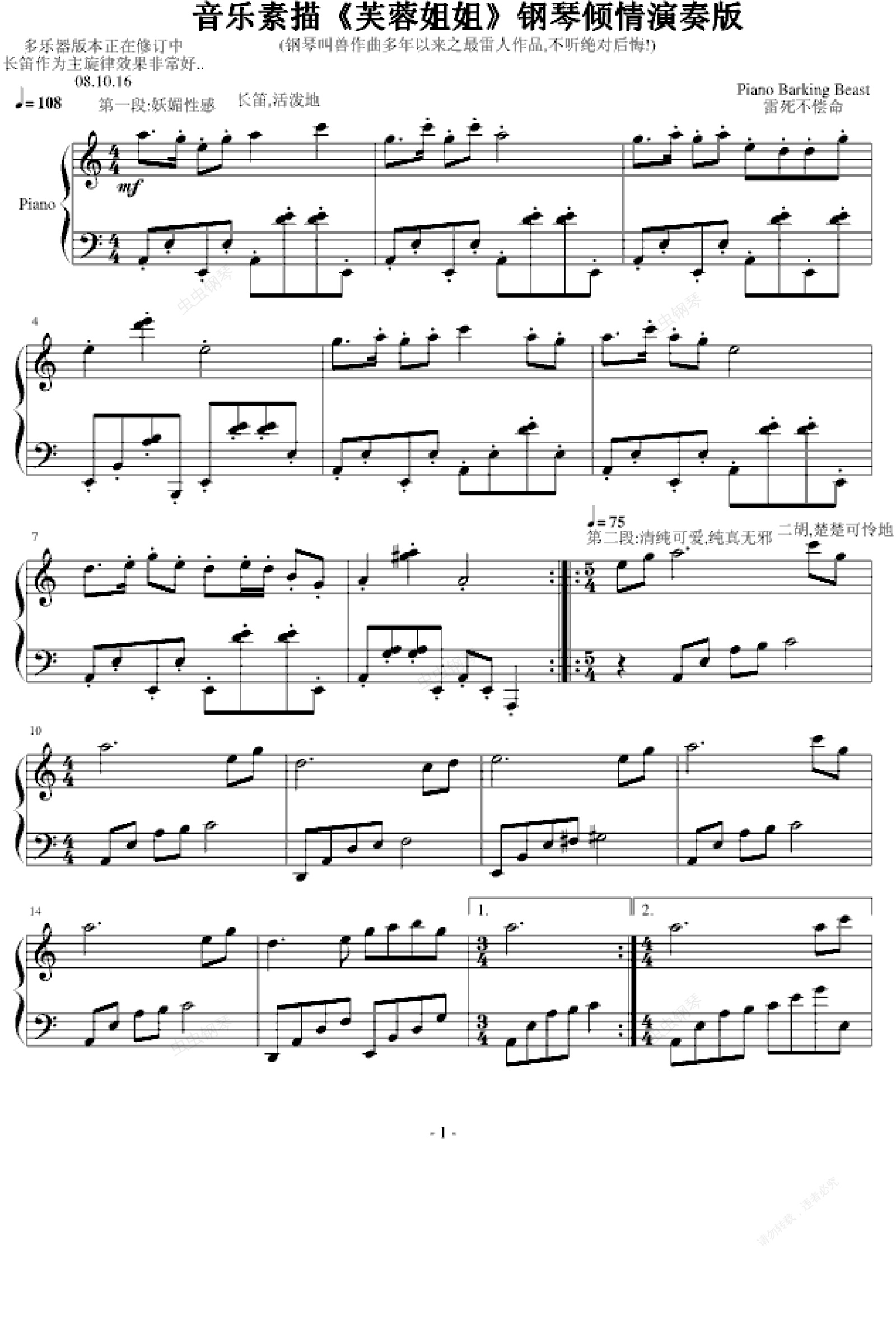 钢琴谱:芙蓉姐姐-雷死不偿命第二弹