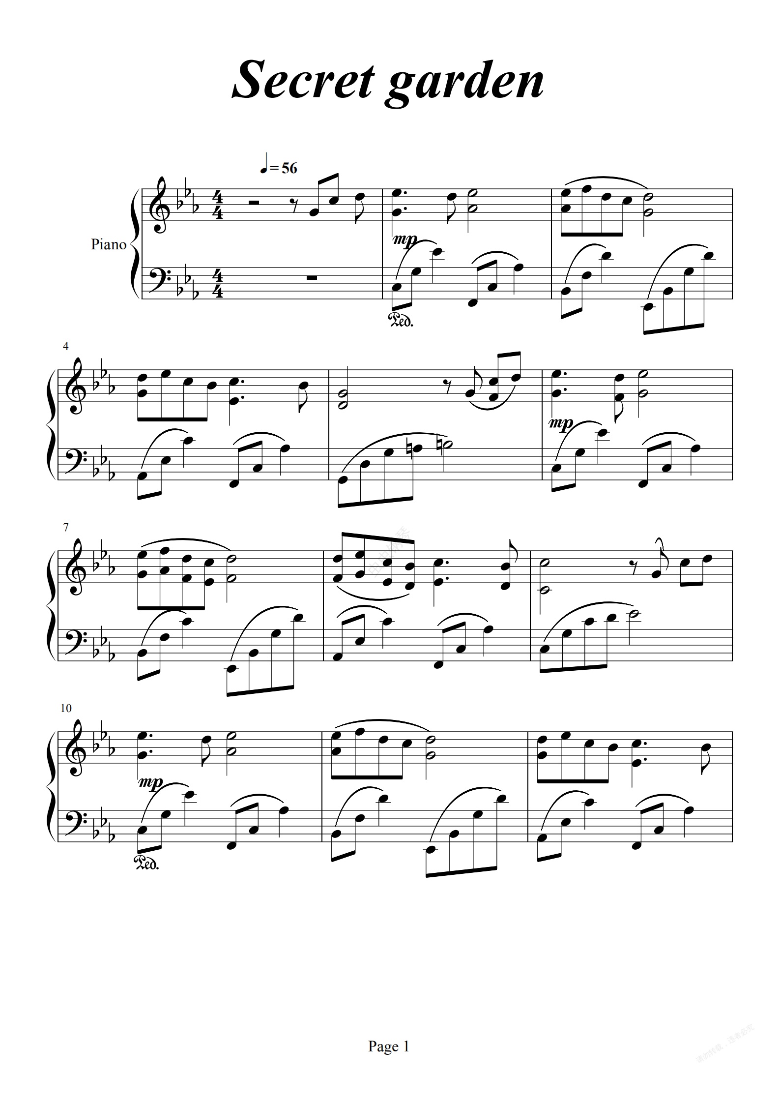 钢琴谱:神秘花园 神秘园之歌