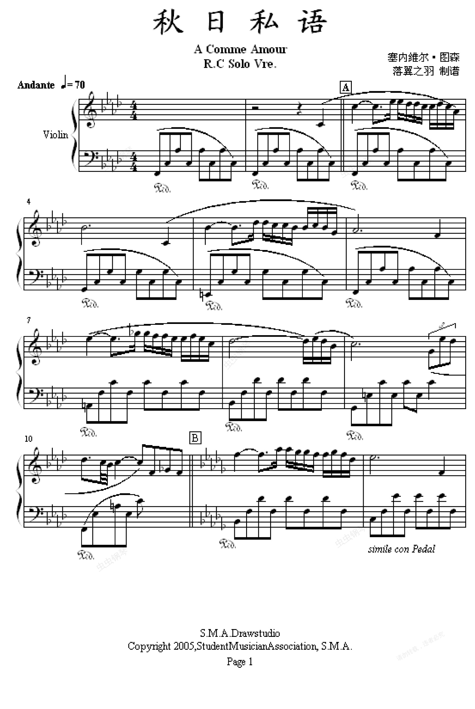 钢琴谱:秋日私语