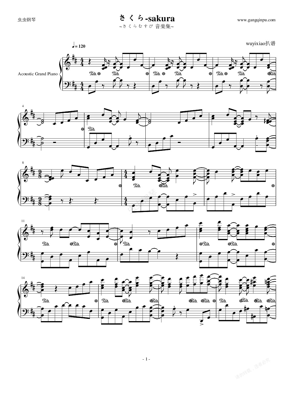 钢琴谱:さくら (さくらむすび 音楽集)