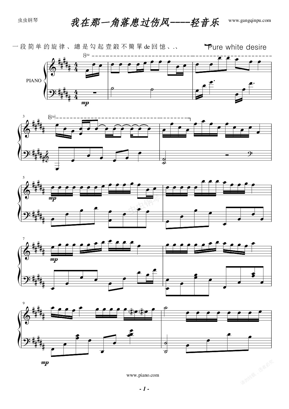 钢琴谱:我在那一角落患过伤风----轻音乐