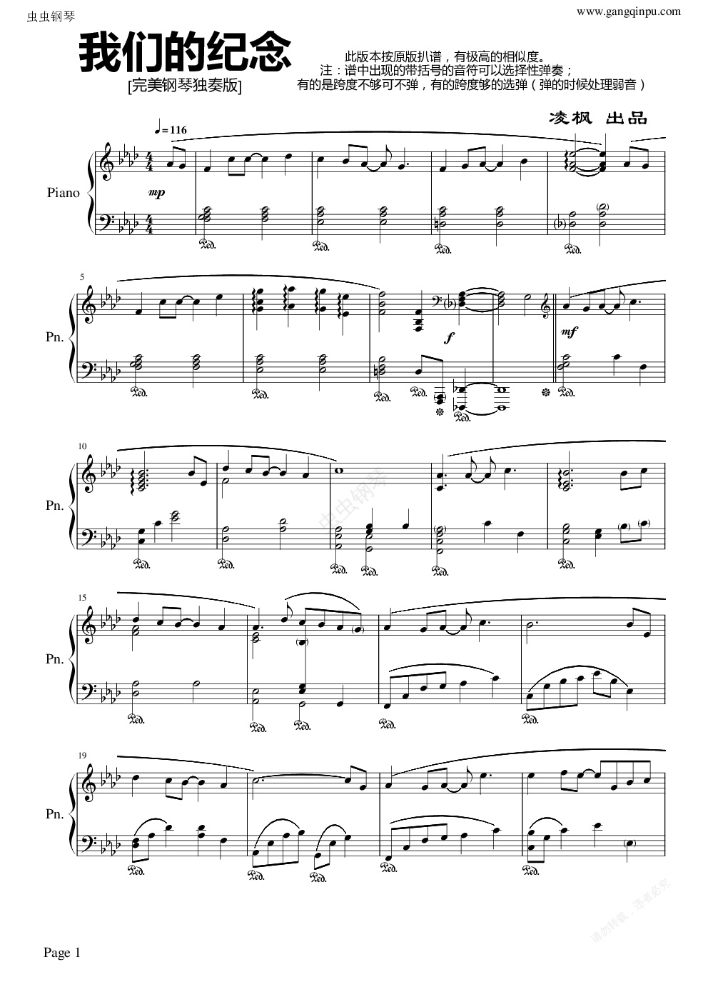 钢琴谱:我们的纪念(完美钢琴独奏版)