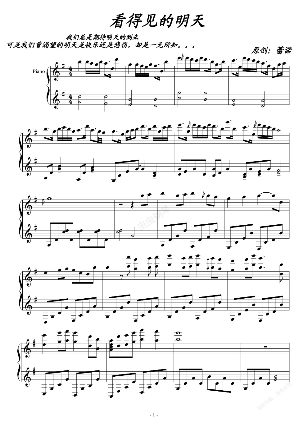 钢琴谱:看得见的明天