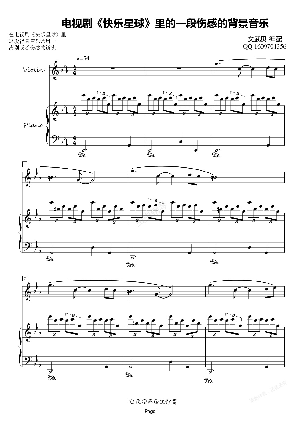 钢琴谱:电视剧《快乐星球》里的一段伤感的背景音乐