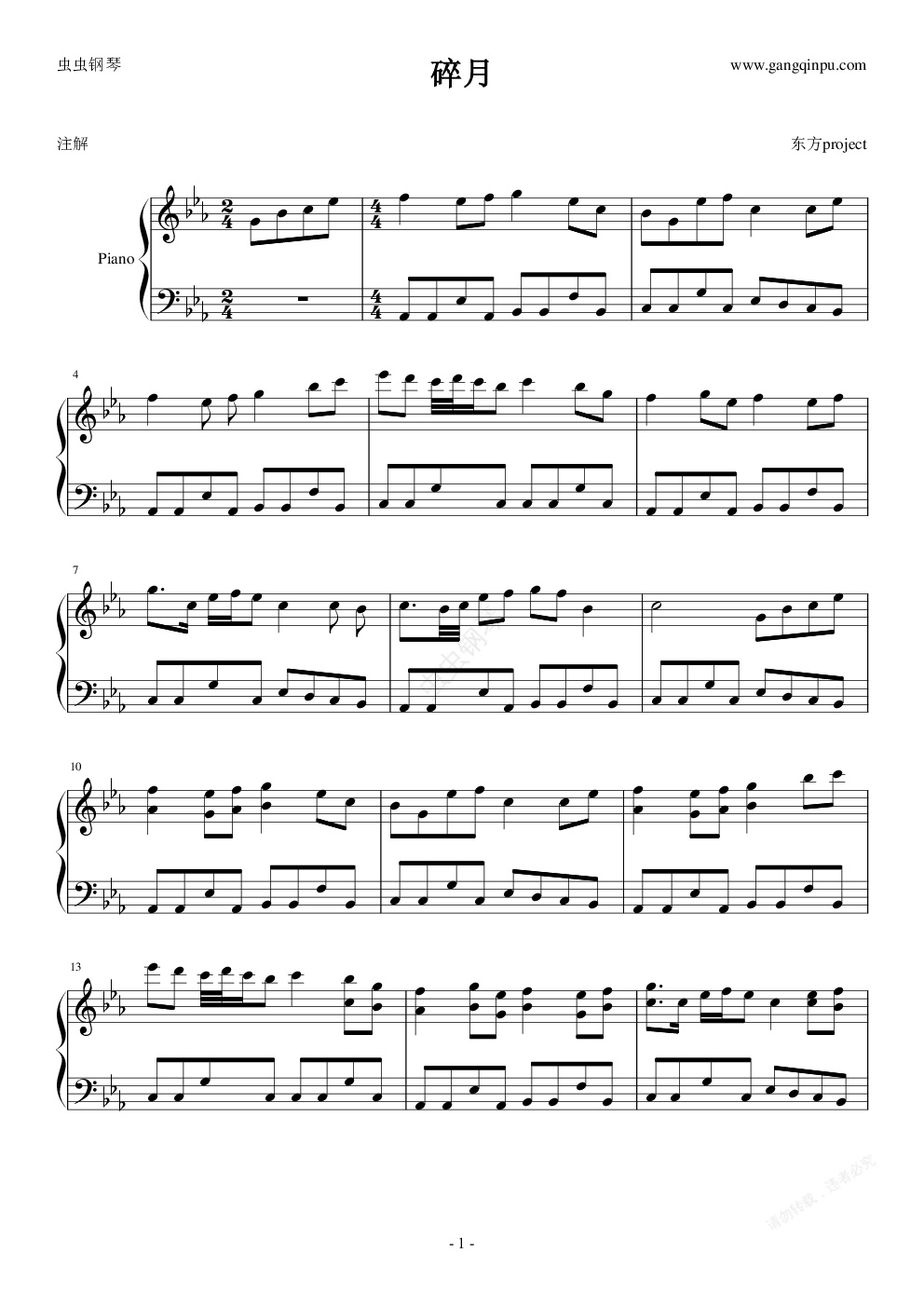 钢琴谱:碎月(扒网上某人的)